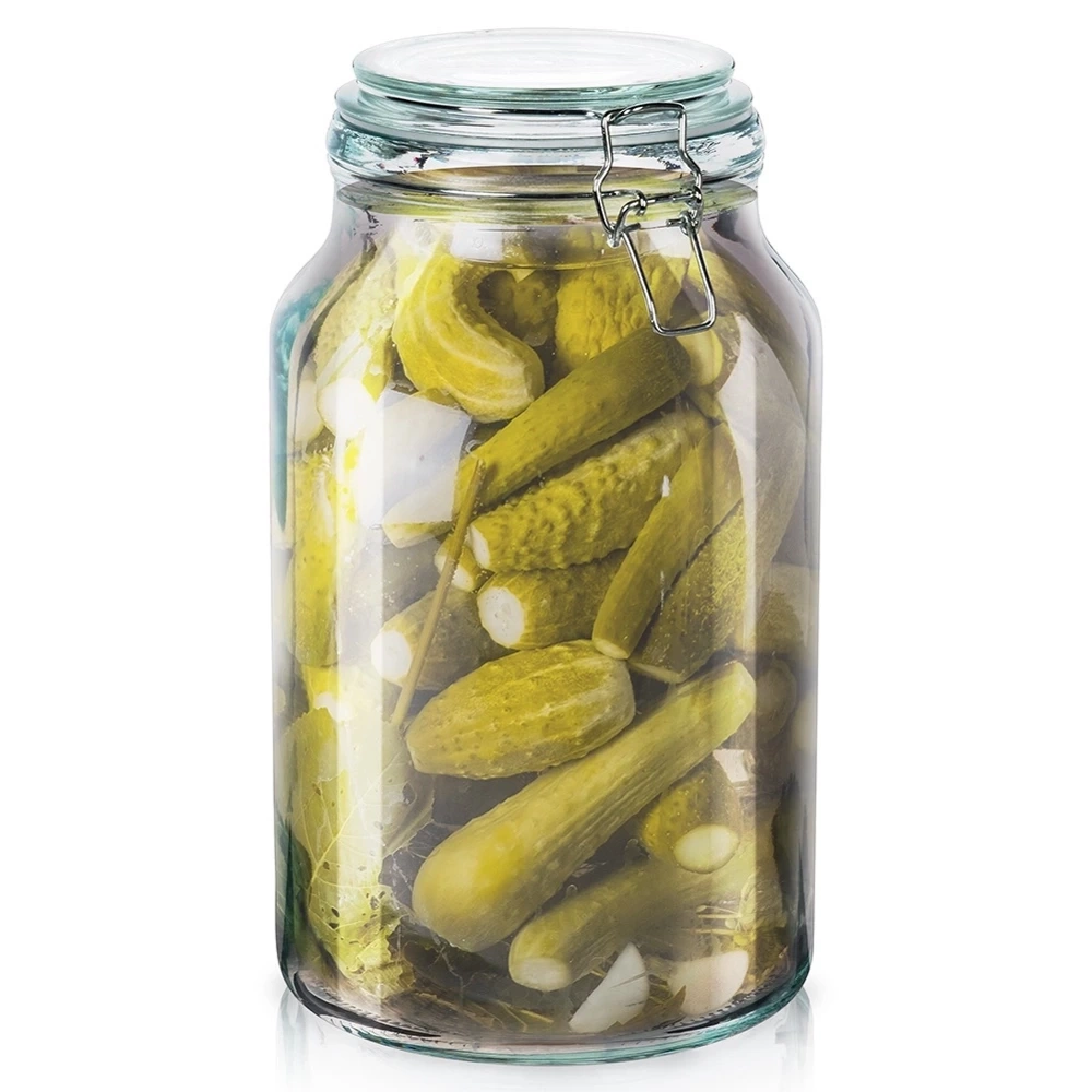- UNIWERSALNY - Słoik z pokrywką oraz patentowym zamknięciem. Posiada uniwersalne zastosowanie w domu. Słoik ma pojemność 4,2 litra, średnicę 16 cm, wysokość 28 cm, a średnica otworu to 12 cm.