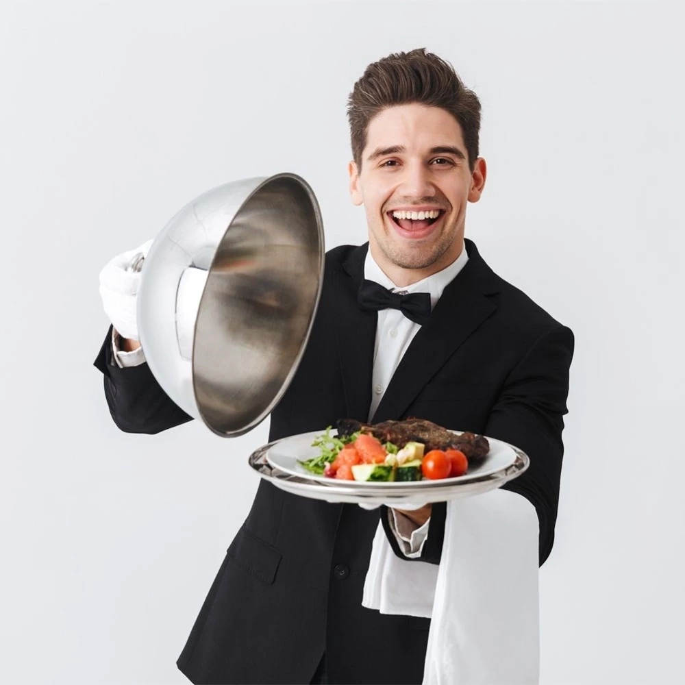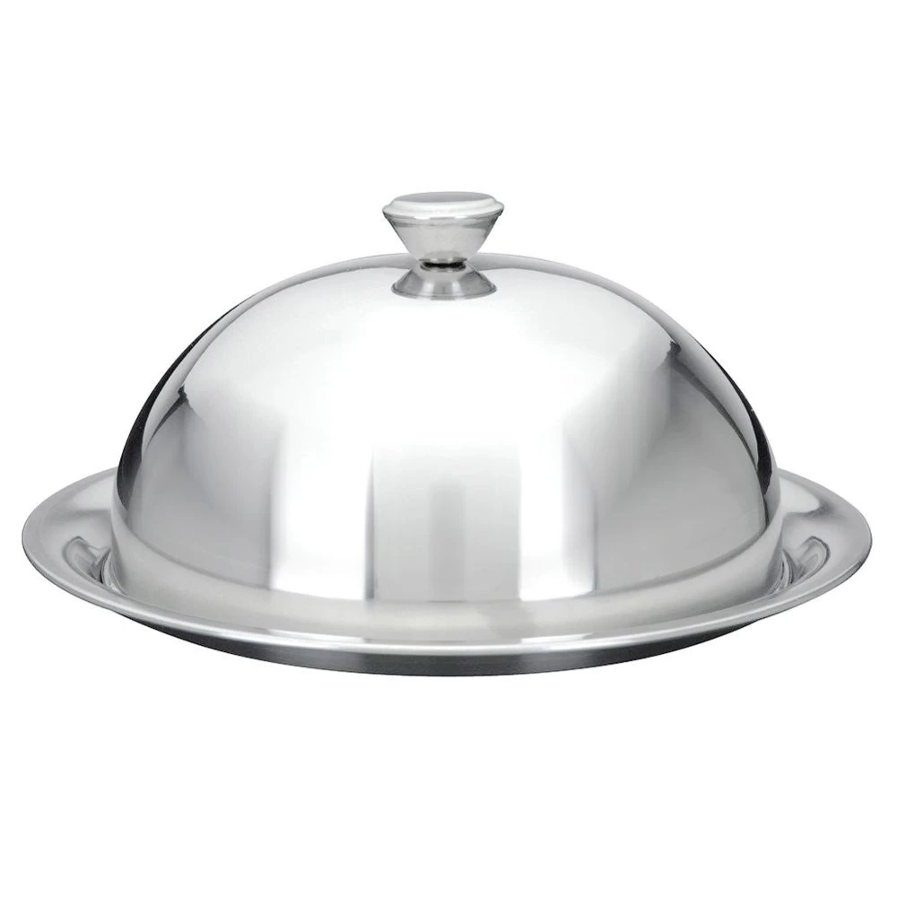 - Stalowa taca o średnicy użytkowej 20 cm z kloszem. Idealna do serwowania dań, przekąsek czy deserów. Sprawdzi się podczas spotkań z przyjaciółmi, jak i do profesjonalnego użytku w restauracji lub hotelu.