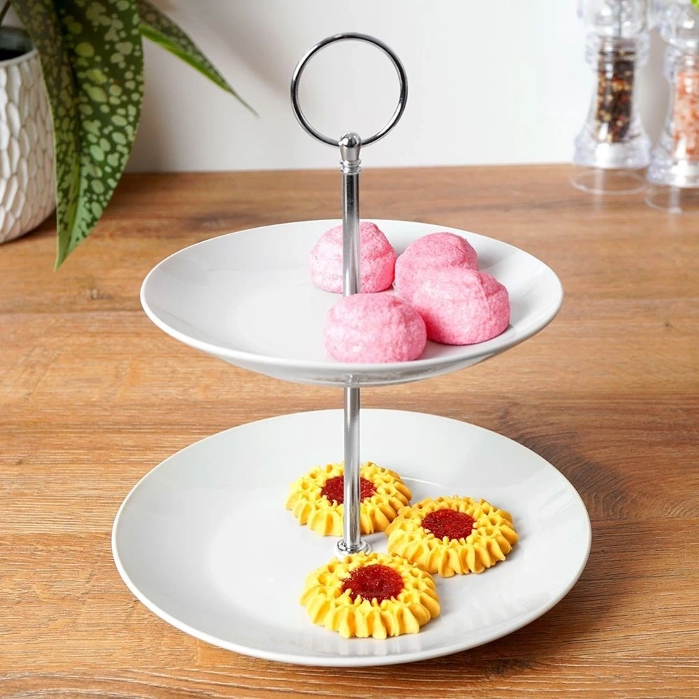 - Patera 2- piętrowa wykonana z porcelany. Świetnie prezentować się będą na niej babeczki, ciasteczka, różnego rodzaju desery jak również przystawki.
