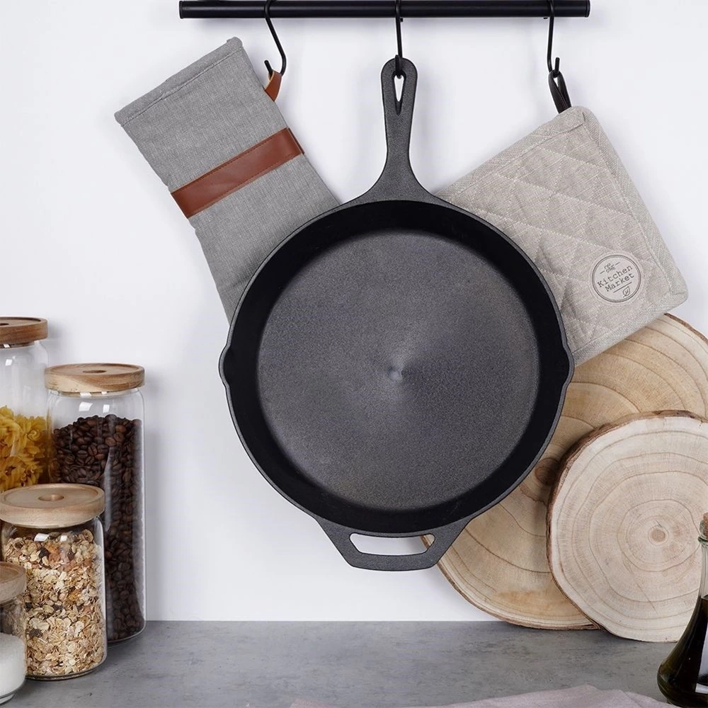 - Patelnia żeliwna o średnicy 30 cm. Nadaje się na każdy rodzaj kuchni włącznie z indukcją. Można stosować w piekarnikach i bezpośrednio na ogniu.