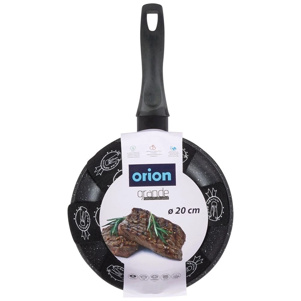 Nieprzywierająca patelnia o wyjątkowym, ponadczasowym wyglądzie z serii GRANDE. Patelnia efektownie prezentuje się w kuchni. Z jej pomocą usmażymy mięso, warzywa, jak i naleśniki. Wykonana z najwyższej jakości materiałów. Niezbędna w każdej kuchni. Odpowiednio użytkowana posłuży długie lata. W naszej ofercie również inne naczynia z serii GRANDE. Oryginalny produkt czeskiej marki Orion. Wyprodukowano zgodnie z europejskimi standardami.