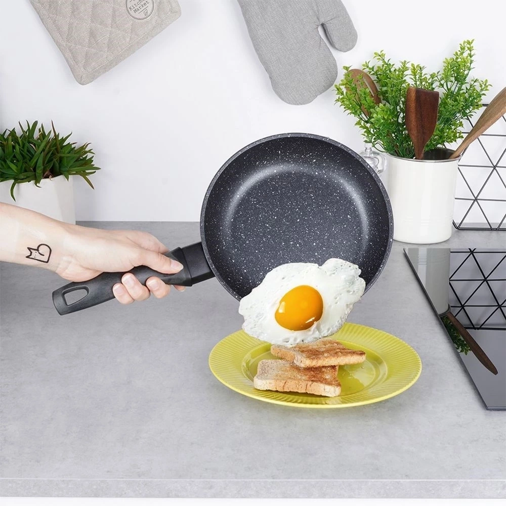 - NIEPRZYWIERAJĄCA - Patelnia posiada nieprzywierającą powłokę granitową, która umożliwia przygotowywanie zdrowych i smacznych posiłków z minimalną ilością tłuszczu. Ciepło rozchodzi się równomiernie po powierzchni patelni. Użyta powłoka nie posiada PFOA, PTFE. Twoje potrawy będą zdrowe i smaczne.
