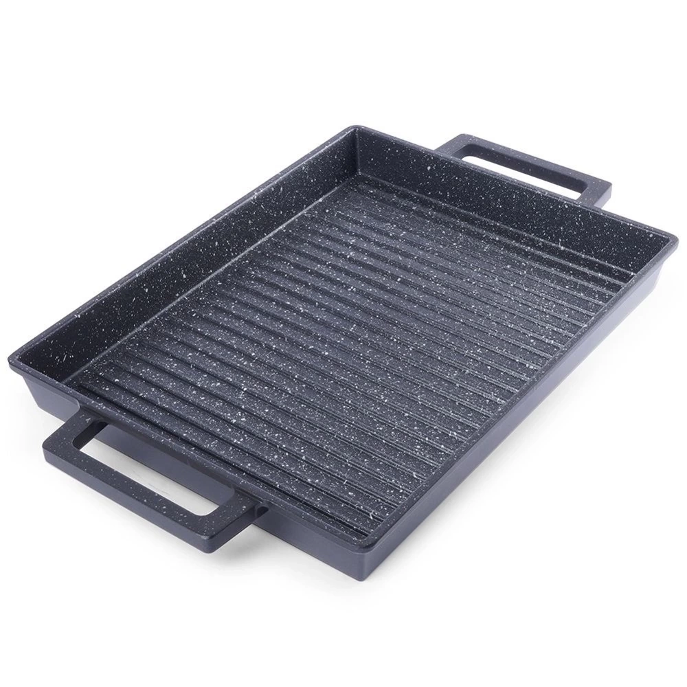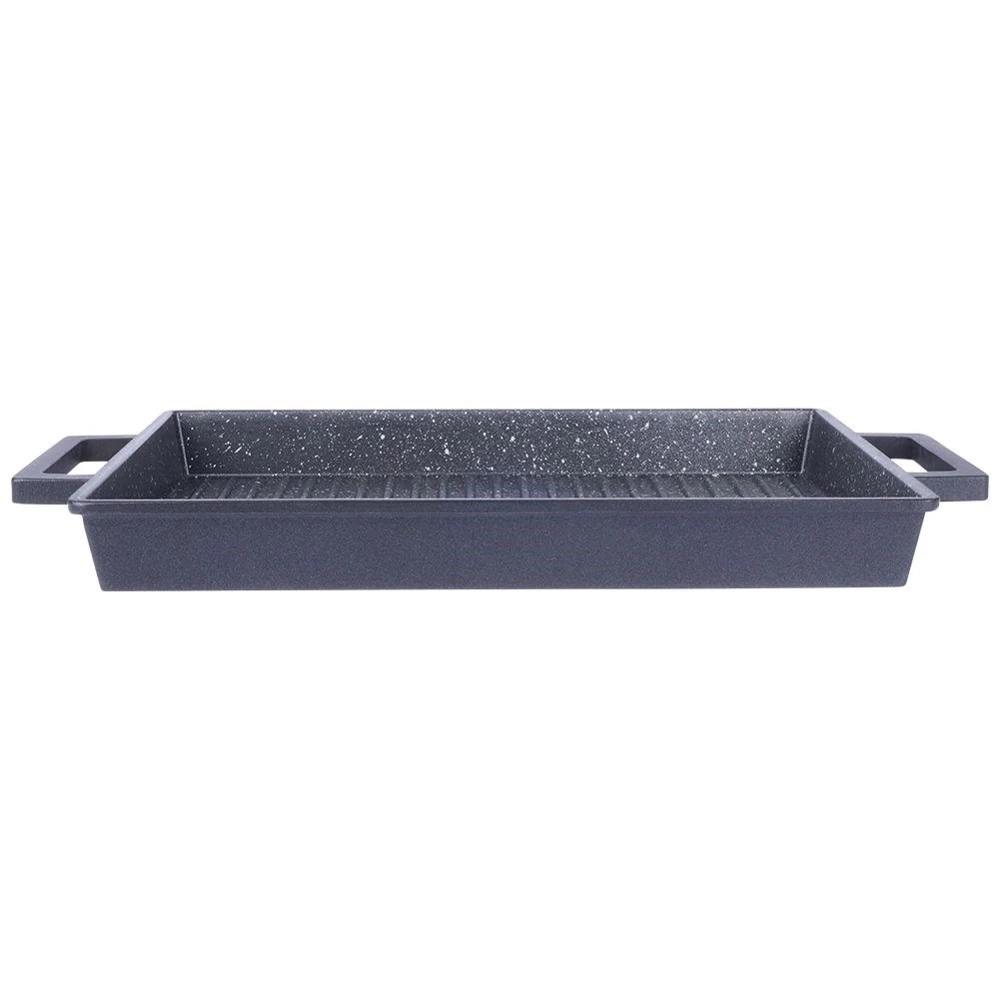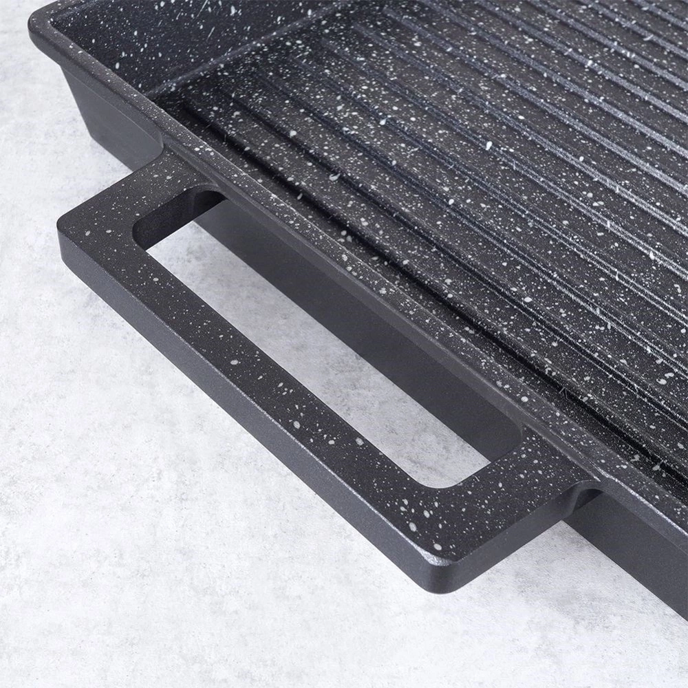 - Płyta grillowa do stosowania na kuchence, grillu i w piekarniku. Wykonana z aluminium z nieprzywierającą powłoką granitową PFLUON GRANIT. Pasuje do każdego rodzaju kuchenek.