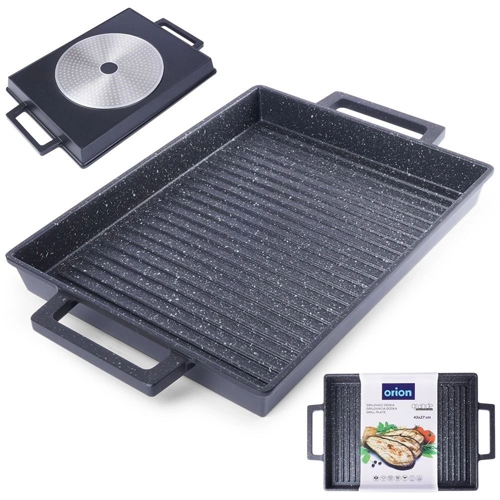 Płyta grillowa o wszechstronnym przeznaczeniu. Idealna do smażenia różnego rodzaju potraw, zarówno na kuchence, jak i w piekarniku. Dzięki niej przygotujemy pyszne i zdrowe dania, których składniki zachowują swój autentyczny smak i wartości odżywcze. Nieprzywierająca powłoka sprawi, że użytkowanie jej będzie wyjątkowe łatwe, a czyszczenie nie sprawi problemu. Jeżeli chcesz korzystać z płyty na grillu pamiętaj, aby nigdy nie wkładać płyty grillowej bezpośrednio w płomienie ognia, może to spowodować deformację lub inne uszkodzenie produktu - w takim przypadku nie może on być przedmiotem reklamacji! Umieść talerz nad płomieniami lub rozżarzonymi węglami na grillu. Oryginalny produkt czeskiej marki Orion. Wyprodukowano zgodnie z europejskimi standardami.