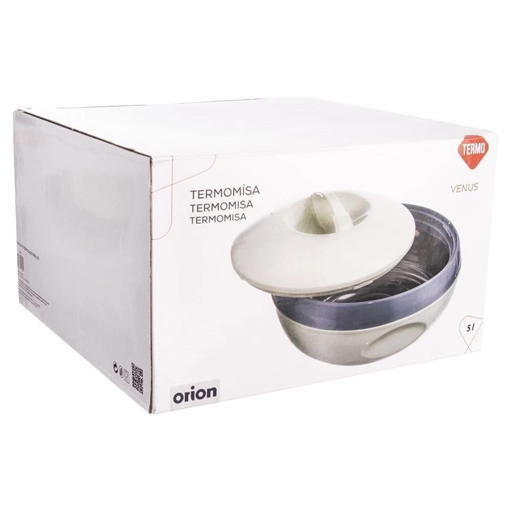 Termomisa do przechowywania potraw. Utrzyma ciepło umieszczonej w niej potrawy. Latem możemy przechowywać w niej lody np. podczas przyjęć w ogrodzie, by uniknąć szybkiego roztopienia lodów. Termomisa jest lekka, co zapewni wygodne przenoszenie. Wewnętrzna, gładka powierzchnia zapewni wygodne mycie. W celu utrzymania dłużej zimnej temperatury w termomisie należy umieścić ją na około godzinę do lodówki przed włożeniem zawartości, chcąc utrzymać dłużej ciepło potraw należy wlać do termomisy gorącą wodę i wylać ją po 1-2 minutach. Oryginalny produkt czeskiej marki Orion. Wyprodukowano zgodnie z europejskimi standardami.