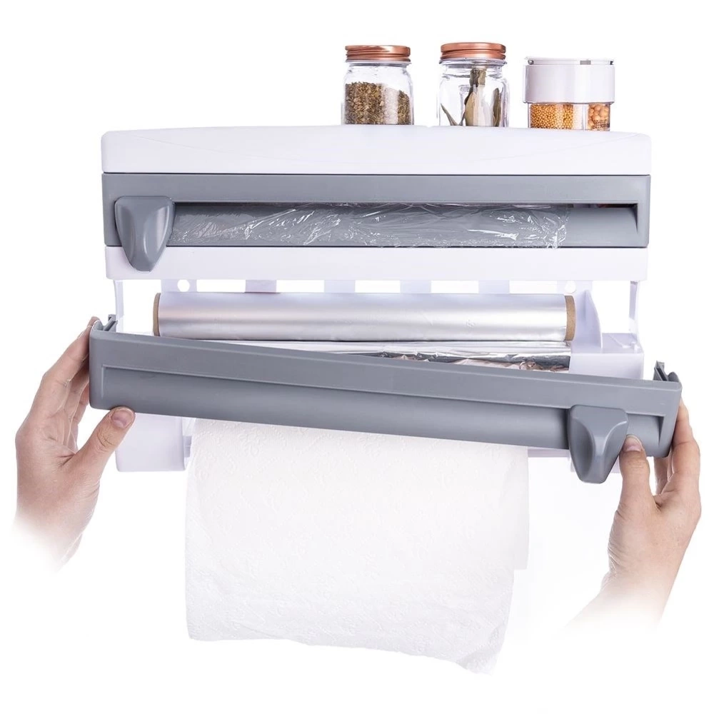 - Podajnik do folii spożywczej, aluminiowej oraz ręczników papierowych. Górna część może być wykorzystana jako półka na przyprawy, papier do pieczenia itp.