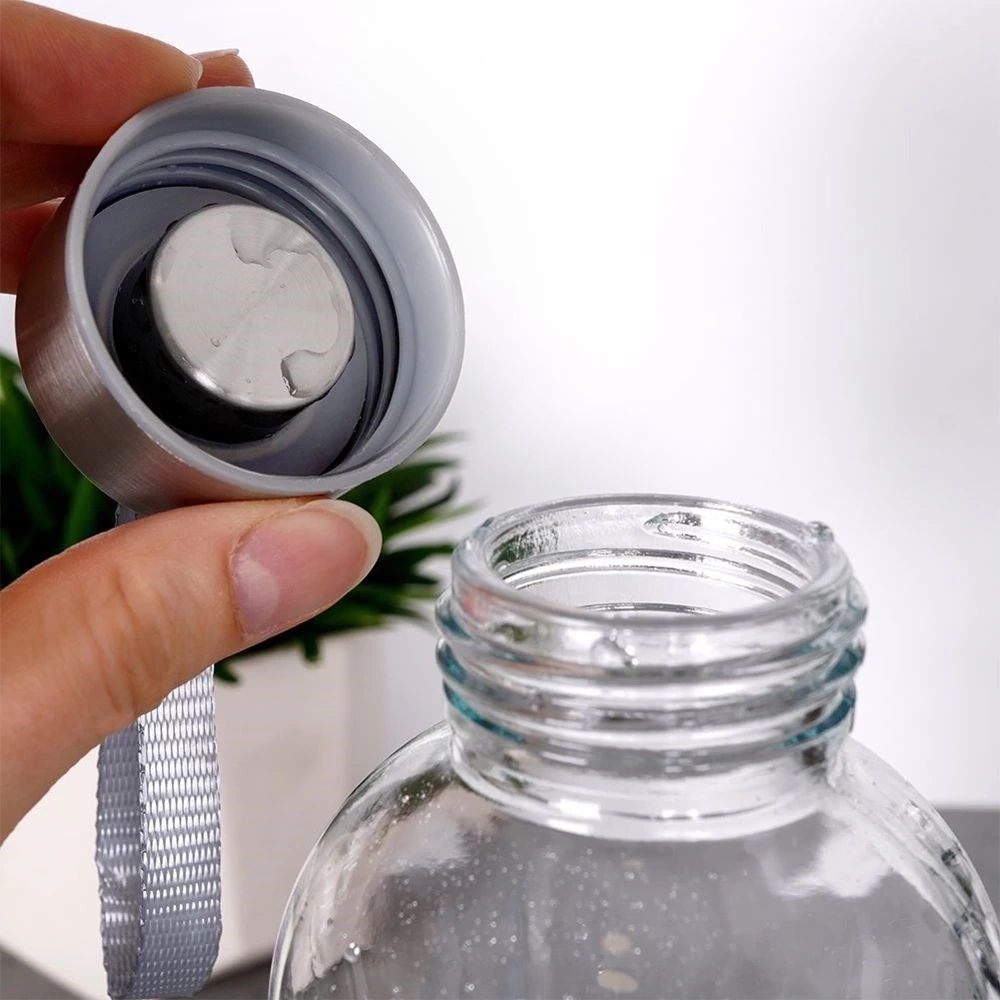 - Butelka o pojemności 600 ml ze szkła borokrzemowego. Posiada uszczelkę oraz stalową zakrętką. Idealna do napojów ciepłych jak i zimnych.