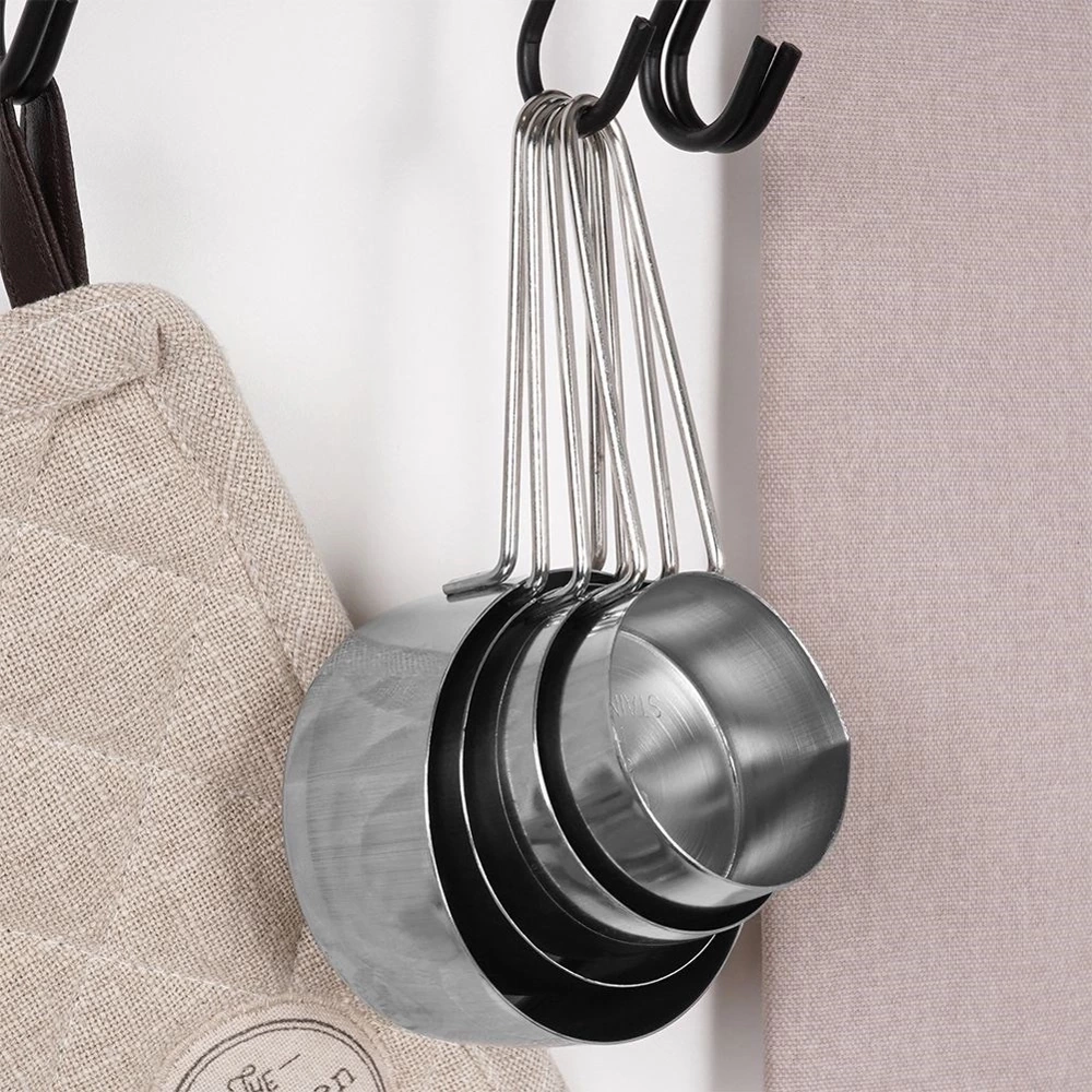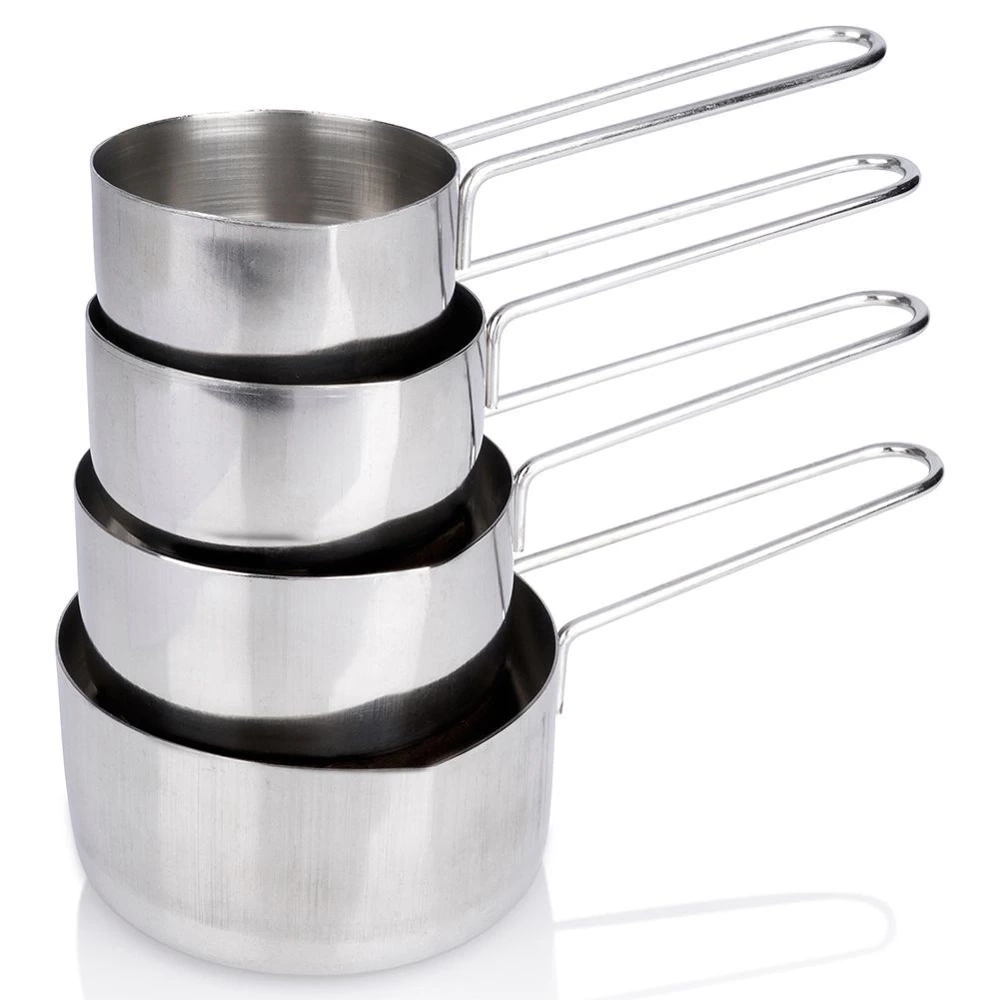 - Zestaw czterech miarek kuchennych w formie kubków do odmierzania. Wykonane z wysokiej jakości stali nierdzewnej. Niezbędne w każdej kuchni.