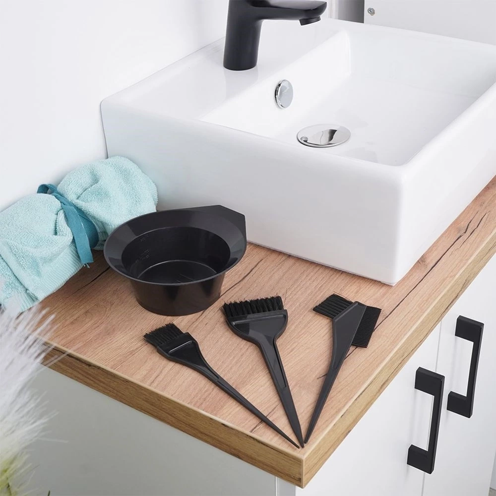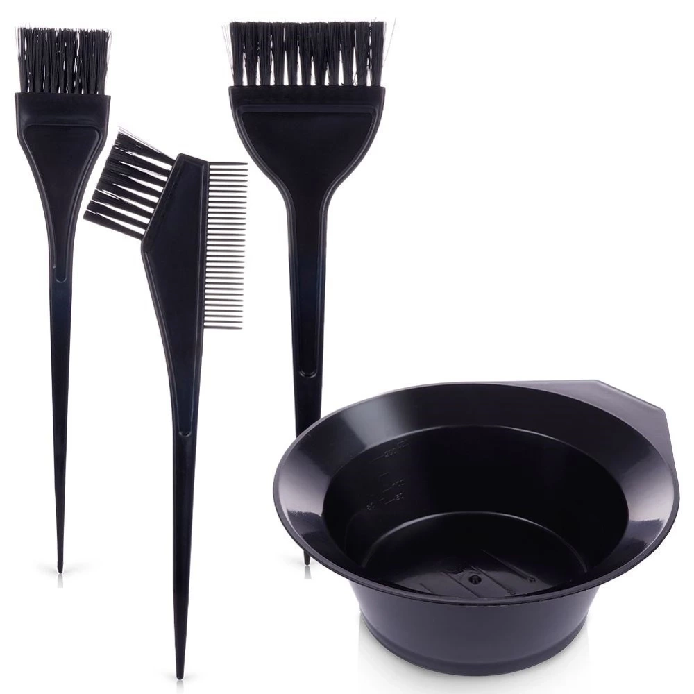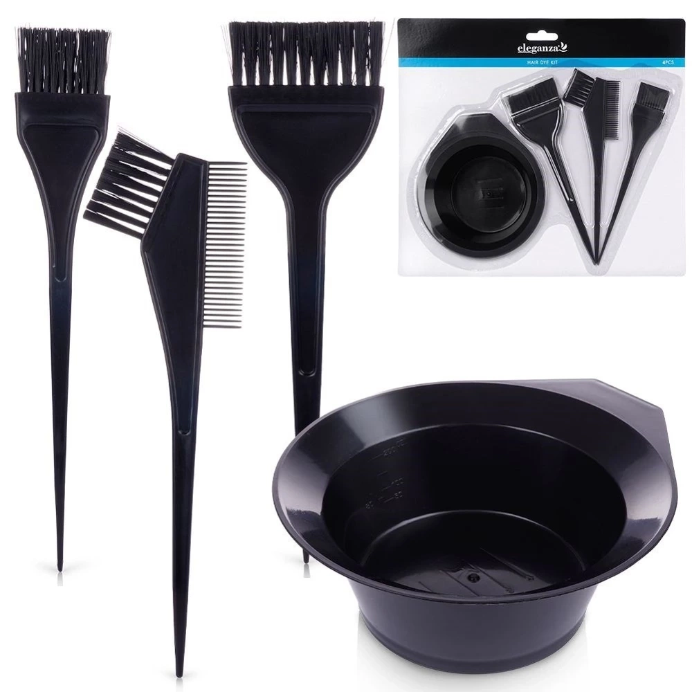 - Zestaw akcesoriów do farbowania włosów. Składa się z miseczki do mieszania farby i trzech pędzli. Sprawdzi się w użytku domowym, a także w salonie fryzjerskim.