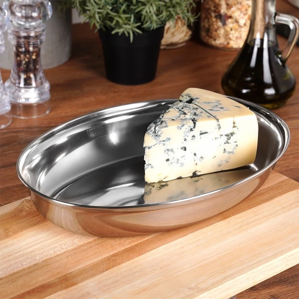 - Półmisek o owalnym kształcie idealny do serwowania dań, przekąsek, przystawek itp. Wykonany ze stali nierdzewnej. Odporny na stłuczenia.