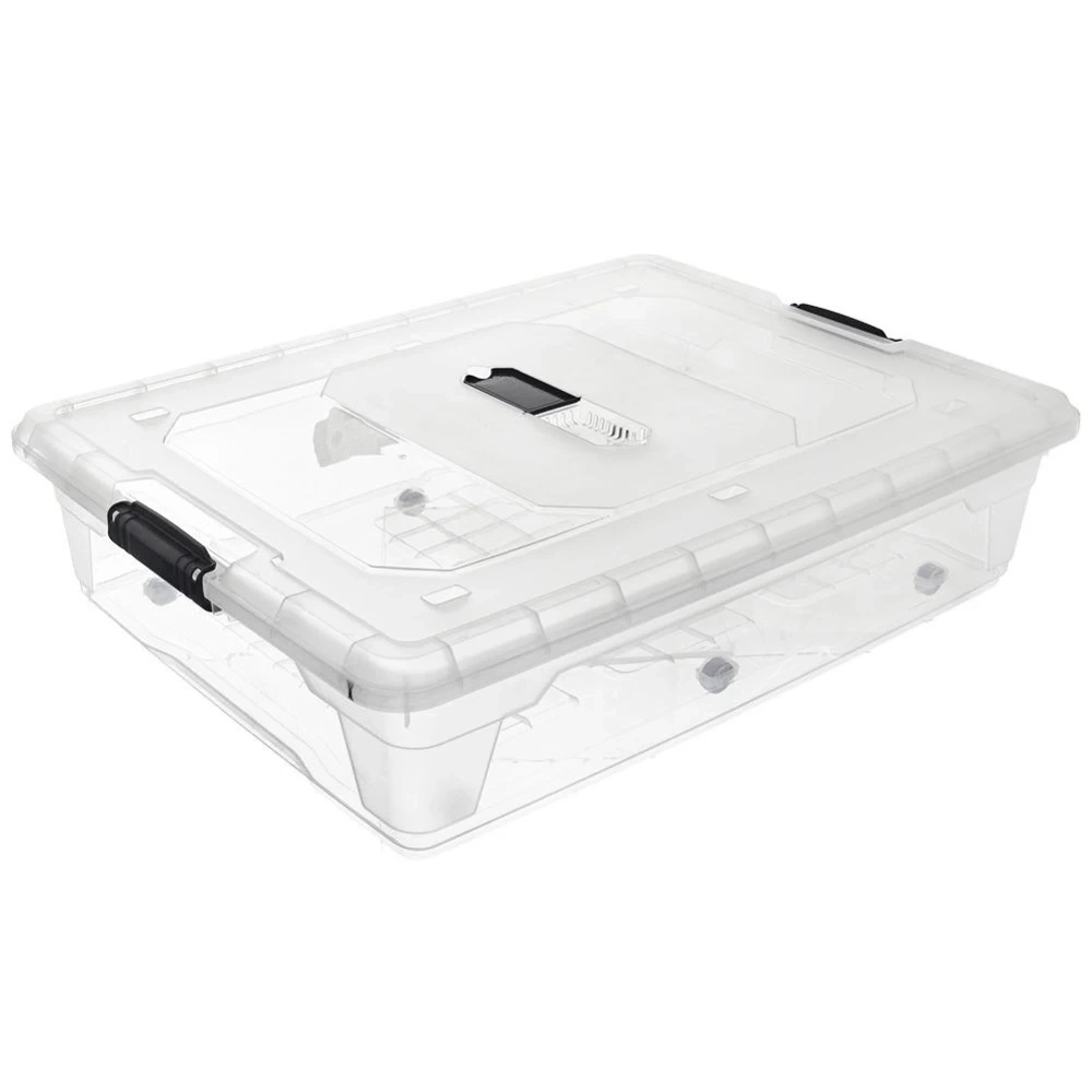 - Zamykany pojemnik na kółkach o uniwersalnym zastosowaniu. Idealny do przechowywania pod łóżkiem. Posiada dużą pojemność i jest wytrzymały.