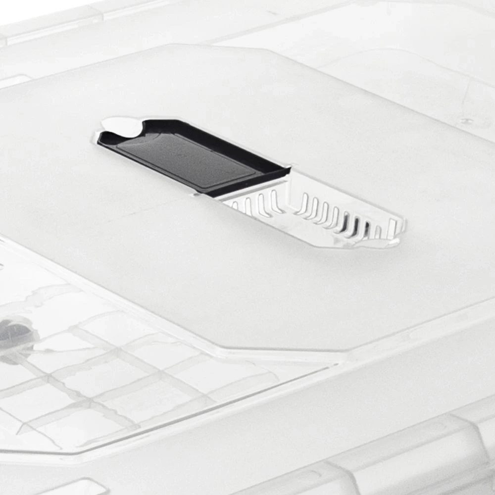 Zamykany, niski pojemnik na kółkach o uniwersalnym zastosowaniu. Przydatny w domu, warsztacie czy ogrodzie. Posiada pokrywkę, która chroni zawartość pojemnika przed kurzem oraz innymi czynnikami zewnętrznymi. Jest mobilny, dzięki kółkom umieszczonym na dnie pojemnika, co ułatwia jego przemieszczanie. Duża pojemność pojemnika umożliwia łatwe uporządkowanie zabawek, tekstyliów, ubrań, narzędzi i wielu innych rzeczy. Oryginalny produkt czeskiej marki Orion. Wyprodukowano zgodnie z europejskimi standardami.