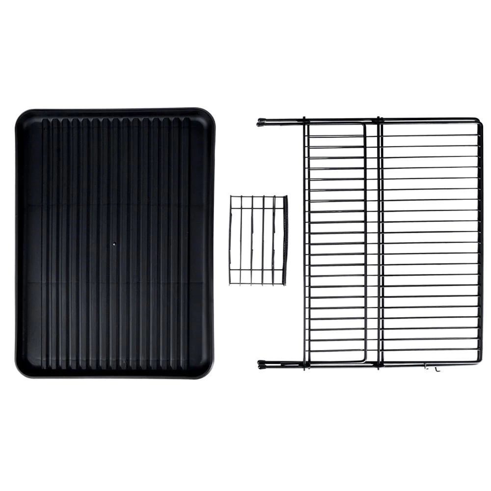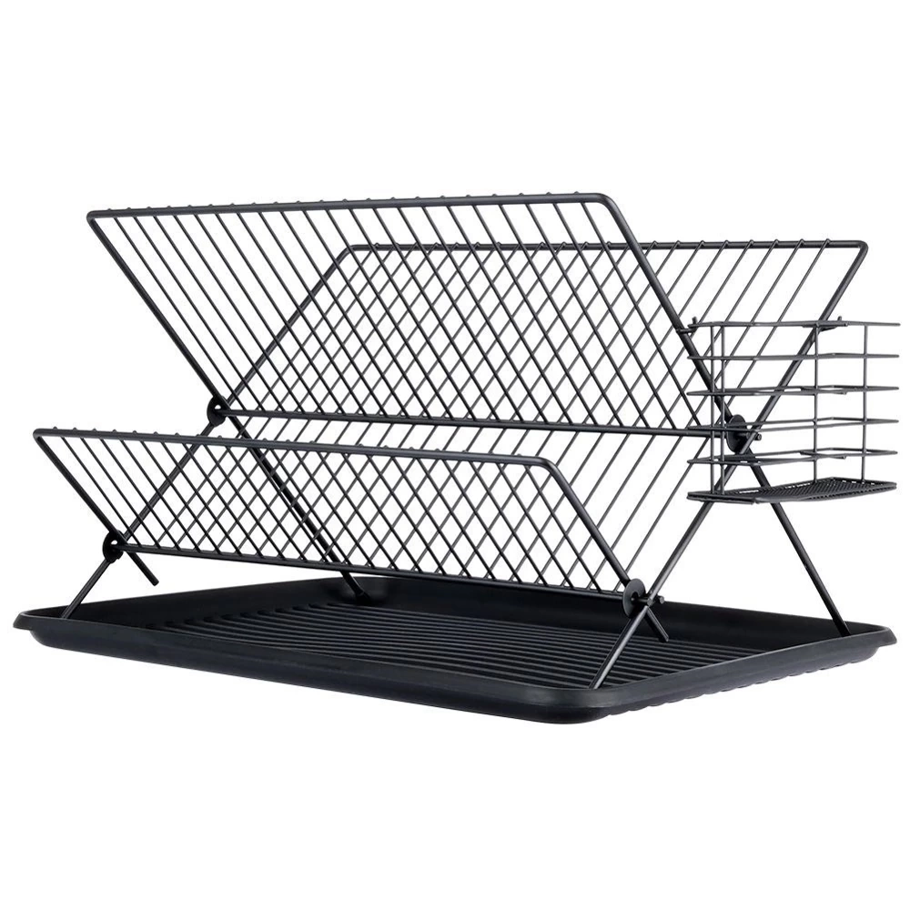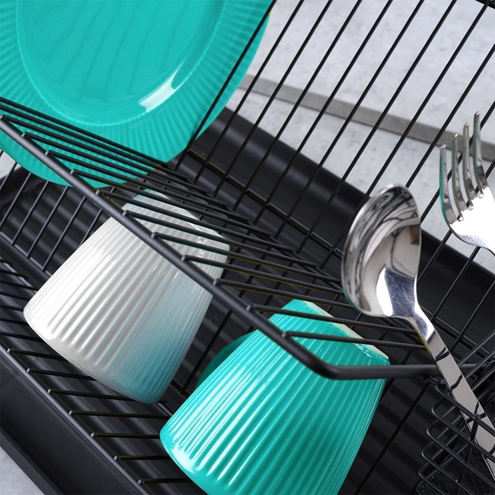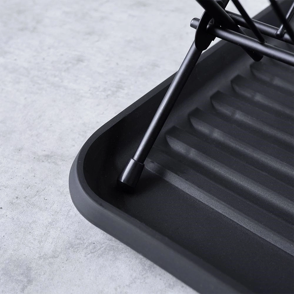 - Elegancka suszarka do naczyń w kolorze czarnym. Posiada miejsce na talerze, szklanki oraz sztućce. Wyposażona w tacę ociekową.