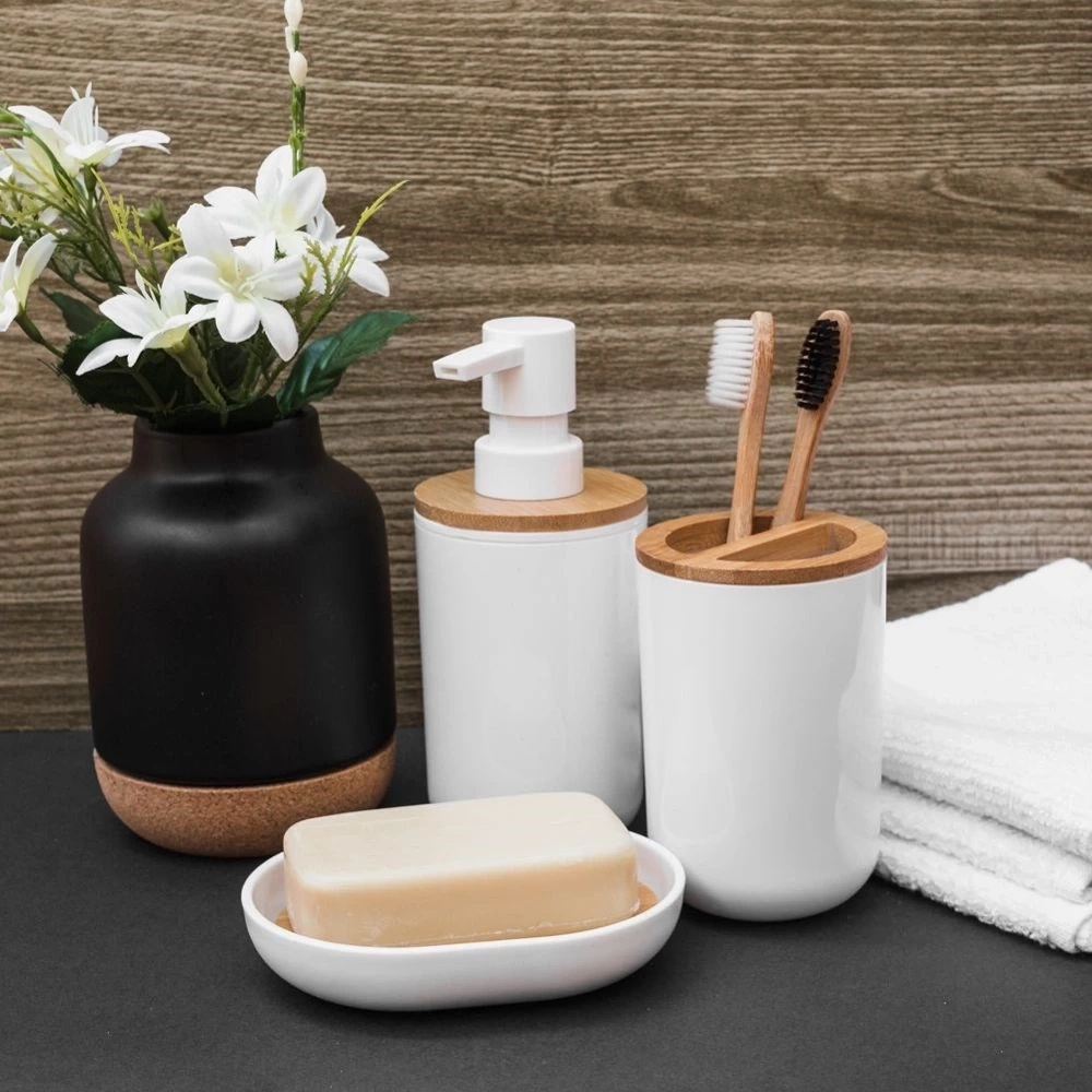- Podstawka łazienkowa pod klasyczną kostkę mydła. Wykonana z tworzywa oraz drewna bambusowego. Stanowi piękną dekorację w łazience.