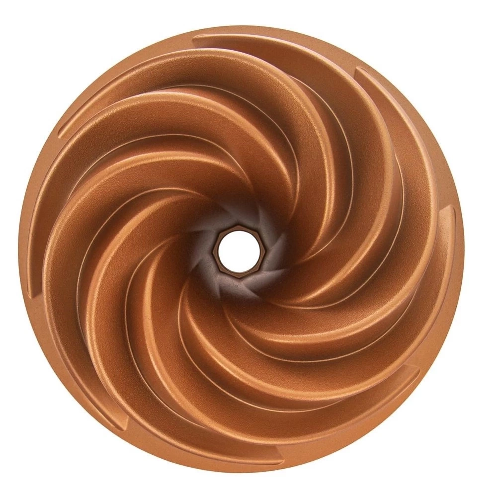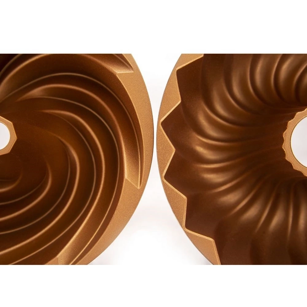 - Wysokiej jakości, okrągła forma do wypieków z linii Marissa, szczególnie polecana do babki. Wykonana z aluminium z podwójną, nieprzywierającą powłoką w kolorze miedzianym.