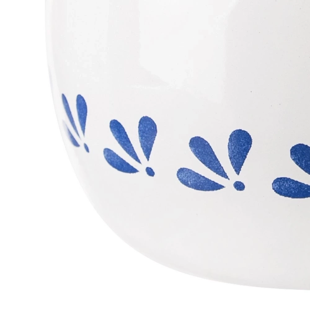 - EMALIOWANY - Wykonany z najwyższej jakości stali emaliowanej w białym kolorze. Posiada efektowane zdobienie na powierzchni w niebieskim kolorze i rant w kolorze czarnym. Emalia, którą pokryto naczynie jest materiałem przyjaznym dla zdrowia, a nawet bezpiecznym dla alergików.