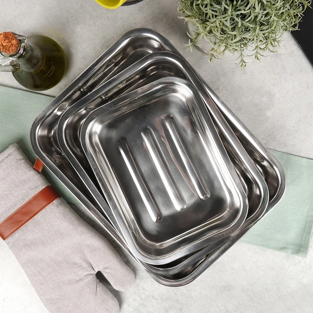 - DO PIECZENIA - Blachy wykorzystamy do pieczenia mięs, deserów, warzyw, ciasteczek, ciast i wielu innych. Możemy również serwować w nich przygotowane potrawy.