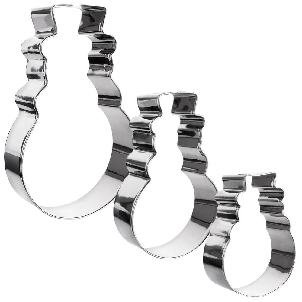 - PRAKTYCZNE - Zestaw trzech świątecznych wykrawaczy w kształcie bałwana. Idealne do przygotowania ciasteczek i pierników. W zestawie foremki w różnych wielkościach: duża (13 x 8,5 x 2,5 cm), średnia (10 x 7 x 2,5 cm) i mała (7,5 x 5 x 2,5 cm).
