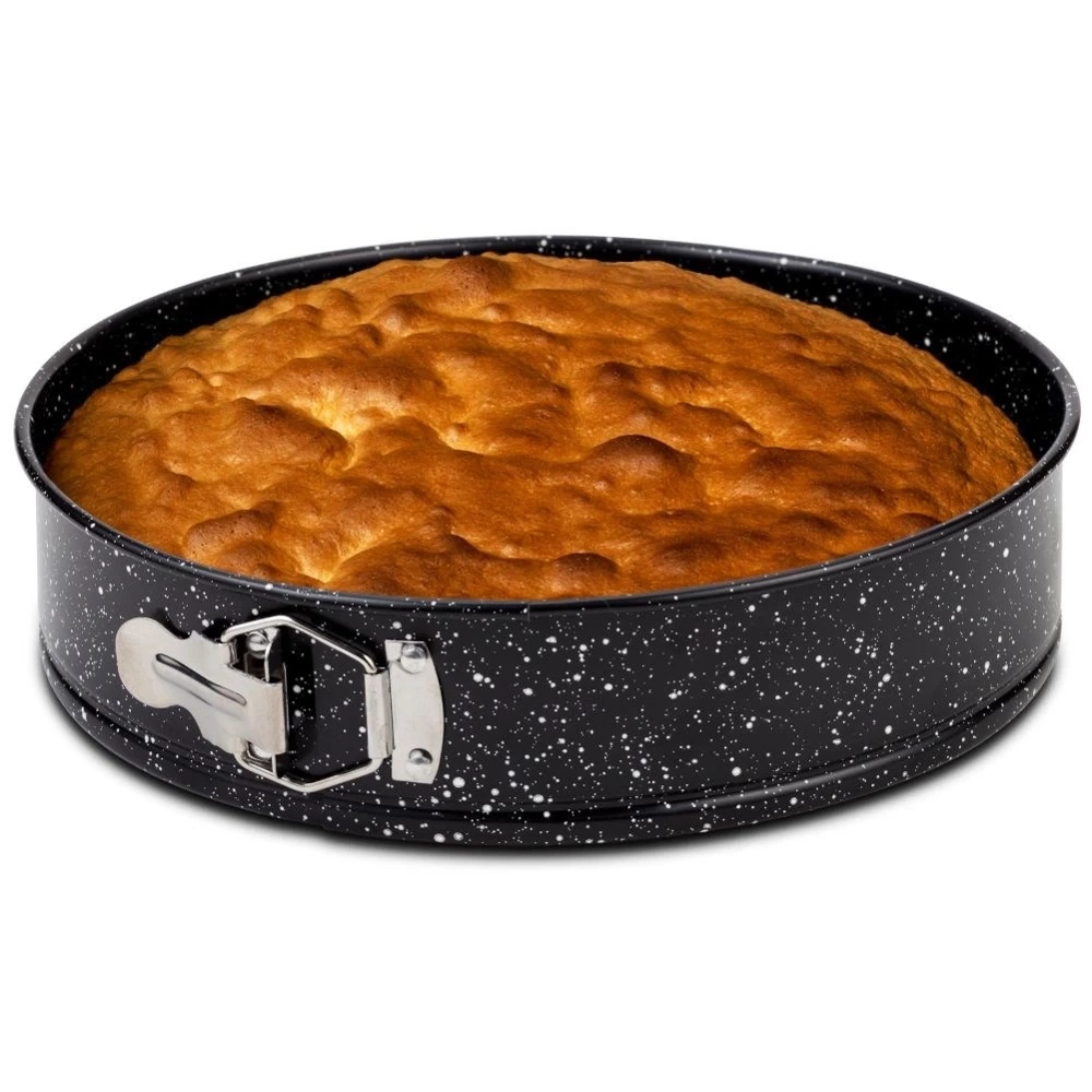 - PRZYDATNA - Okrągła forma do pieczenia o średnicy 27,5 cm i wysokości 7 cm. Sprawdzi się do pieczenia ciast oraz biszkoptów na tort.