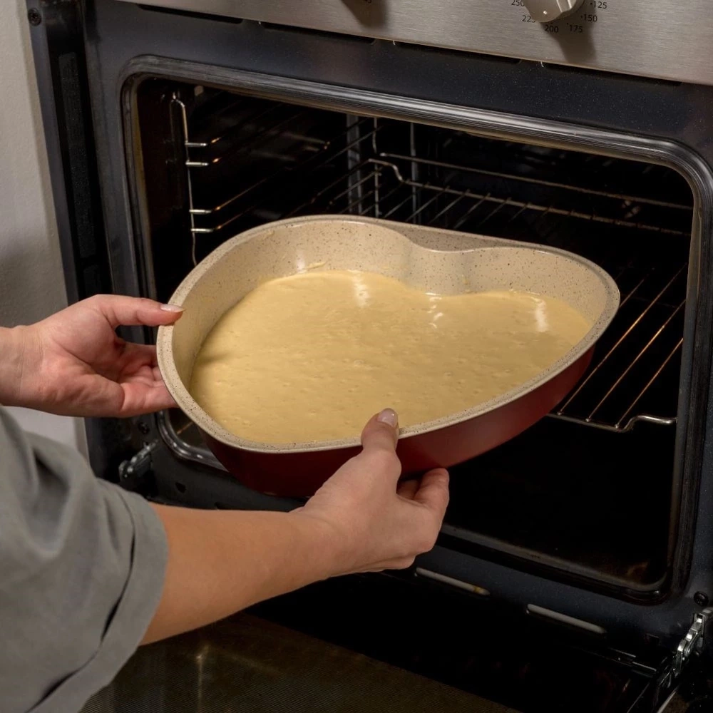 - Forma z ceramiczną powłoką granitową do pieczenia ciast w kształcie serca. Nadaje się do użytku w piekarnikach gazowych oraz elektrycznych.