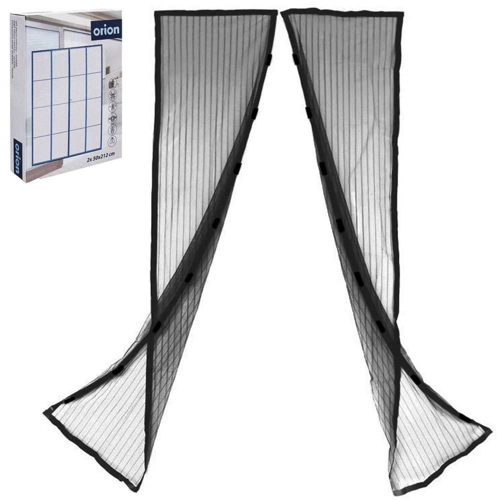 Moskitiera składająca się z dwóch solidnych siatek o szerokości po 50 cm każda. Siatka w kolorze czarnym, dzięki czemu w okresie letnim będzie stanowiła również barierę ochronną przed promieniami słonecznymi, które będą dostawać się do naszego wnętrza. Posiada bardzo wygodny system zamykania w postaci magnetycznego zamknięcia. Moskitiera jest uniwersalna, gdyż możemy ją odpowiednio dociąć do dowolnego rozmiaru. Oryginalny produkt czeskiej marki Orion. Wyprodukowano zgodnie z europejskimi standardami.