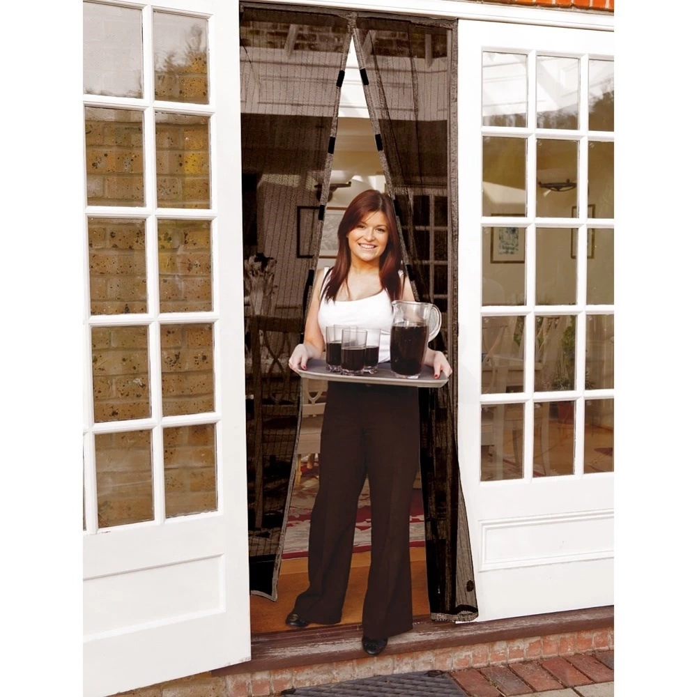- Praktyczna moskitiera przeciw owadom na drzwi z magnetycznym zamknięciem. Składa się z dwóch solidnych siatek o szerokości po 50 cm. Łatwy montaż.