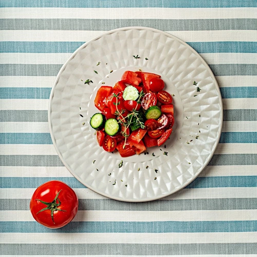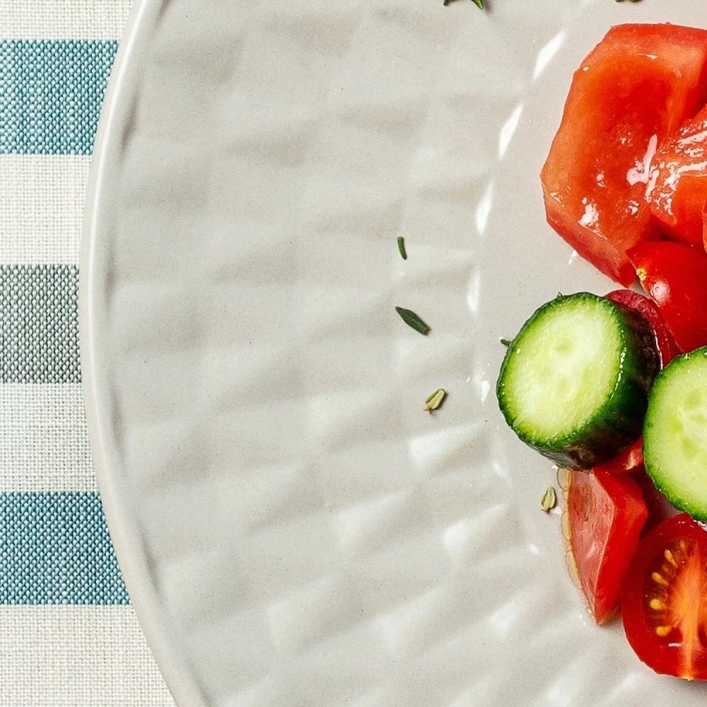 - EFEKTOWNY - Utrzymany w modnej, szarej kolorystyce. Talerz posiada efektowne tłoczenia i pięknie prezentuje się na stole wraz z inną zastawą.