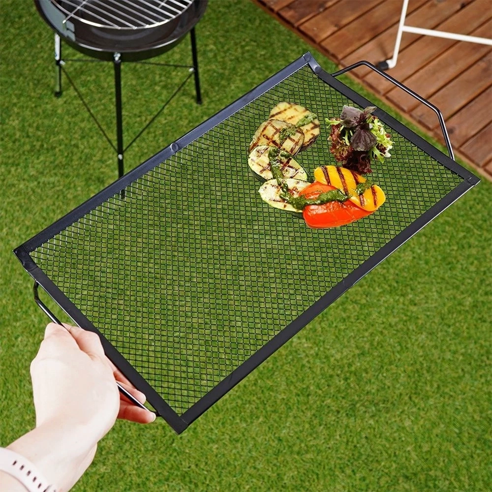 - Blacha grillowa z perforowaną powierzchnią do stosowania na grillu, w piekarniku lub bezpośrednio na ogniu. Wykonana z metalu w czarnym kolorze. Idealna do mięs, ryb, warzyw i innych.