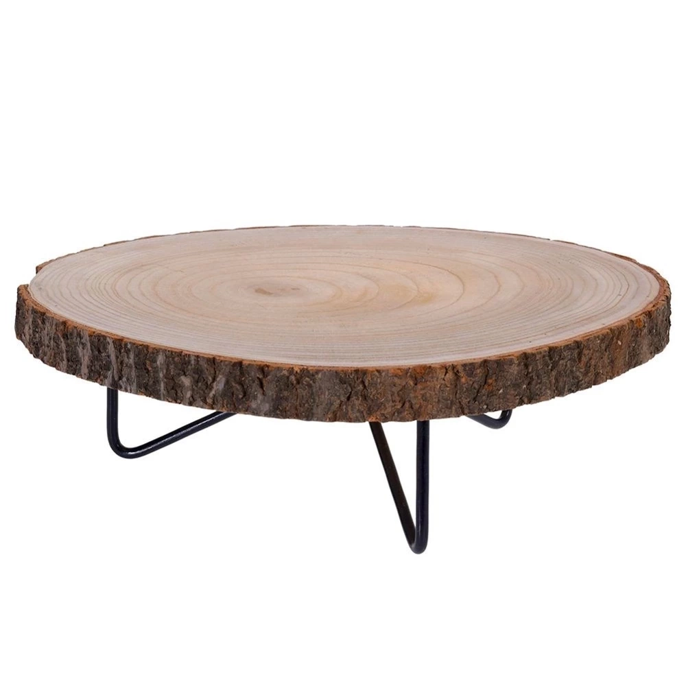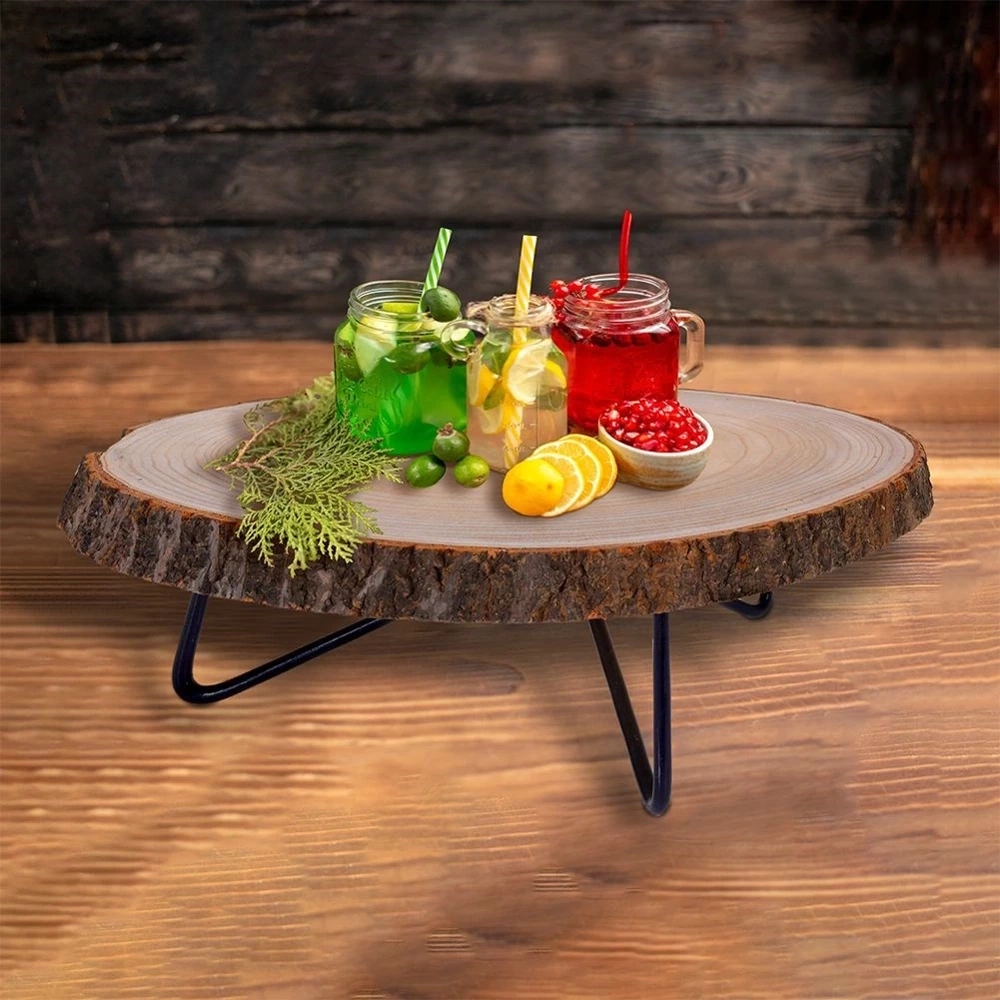 Drewniana deska na metalowych nóżkach, do serwowania dań, przekąsek, tapas czy owoców. Drewniana patera jest niezwykle przydatna w każdym domu. Niezwykle efektowna i stylowa. Idealna w trakcie przyjęć i spotkań. Deska posiada nóżki, dzięki którym podnoszenie tacy oraz stawianie na płaskiej powierzchni jest łatwiejsze. Wyjątkowy pomysł na prezent dla najbliższych np. z okazji parapetówki. W celu odpowiedniej konserwacji nie zaleca się mycia w zmywarce do naczyń. Produkt wykonany z naturalnego drewna wymiary mogą nieznacznie różnić się od podanych. UWAGA! Naturalny plaster drewna może posiadać ubytki w korze, które nie wpływają na użytkowanie, a jedynie podkreślają naturalny wygląd plastra. Wyprodukowano zgodnie z europejskimi standardami.
