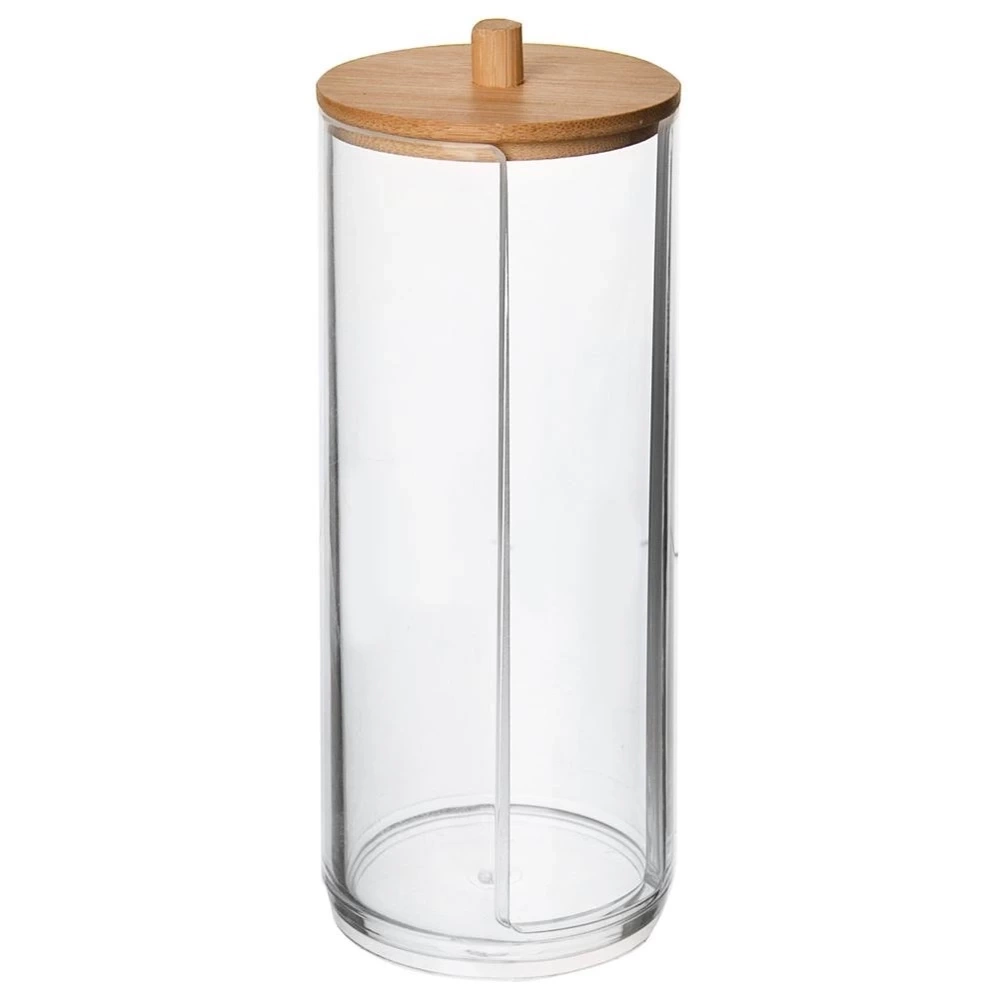 - SOLIDNY - Wykonany z wysokiej jakości, przezroczystego akrylu. Wyposażony w pokrywkę wykonaną z drewna bambusowego. Pojemnik jest solidny i wytrzymały.