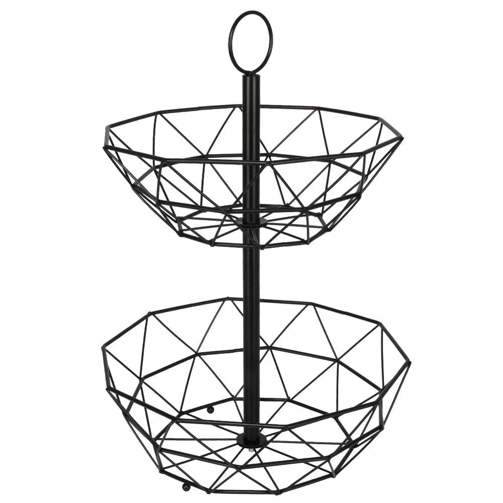 - DO PRZECHOWYWANIA - Metalowy, dwupoziomowy koszyk o średnicy 30 i 27,5 cm, posłuży do przechowywania owoców oraz warzyw.