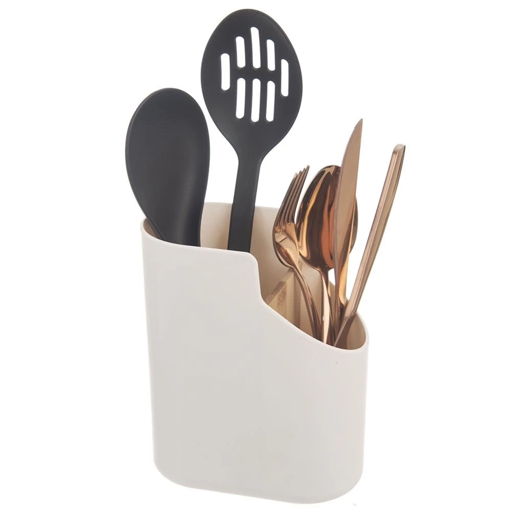 - Pojemnik wykonany z wysokiej jakości tworzywa w kolorze białym. Świetnie sprawdzi się do ociekania oraz przechowywania sztućców. Posiada dwie przegródki.