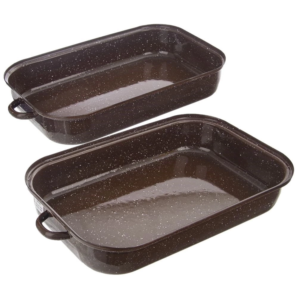 - PRZYDATNA - Brytfanna z pokrywką, idealna do pieczenia wszystkich rodzajów mięs oraz wielu innych potraw. Brytfanna z pokrywką o wymiarach całkowitych 46 x 27,5 x 14,5 cm, długość bez uchwytu 39 cm. Niezwykle pojemna, każde z naczyń jest o pojemności 7 litrów. Po zdjęciu pokrywki uzyskujemy dwa oddzielne naczynia o wymiarach: 46 x 27,5 x 7,5 cm oraz 46 x 26,5 x 7,5 cm. Wymiary wewnętrzne brytfanki to 40 x 24,5 x 7 cm.