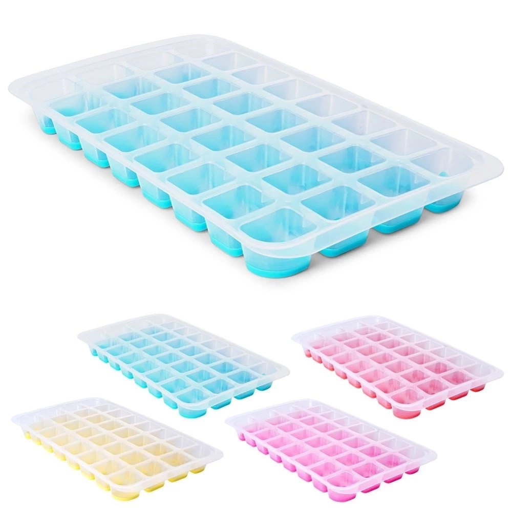 Duża forma do przygotowania 32 kostek lodu. Wymiary foremki to 32,5 x 18 x 3 cm. Posiada elastyczne dno dzięki czemu wyciąganie kostek lodu będzie niezwykle łatwe. Kostki wykorzystamy do wody, napojów oraz drinków alkoholowych. W foremce możemy zamrozić również soki owocowe oraz sorbety otrzymując zamrożone napoje w formie lodów. Forma występuje w różnych kolorach, nie ma możliwości wyboru - wysyłamy losowo.