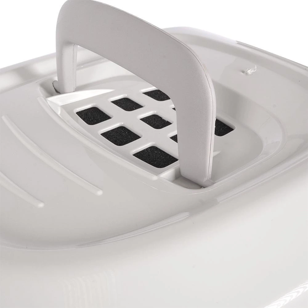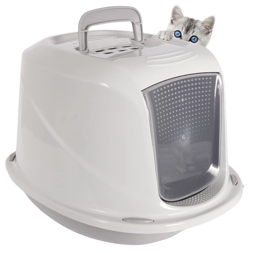 - WYGODNA - Kuweta w górnej pokrywie posiada wygodny uchwyt, który ułatwi przenoszenie. Dzięki wygodnemu uchwytowi możemy wykorzystać ją jako transporter do przewożenia kota w podróży, ale również na wizytę u weterynarza.
