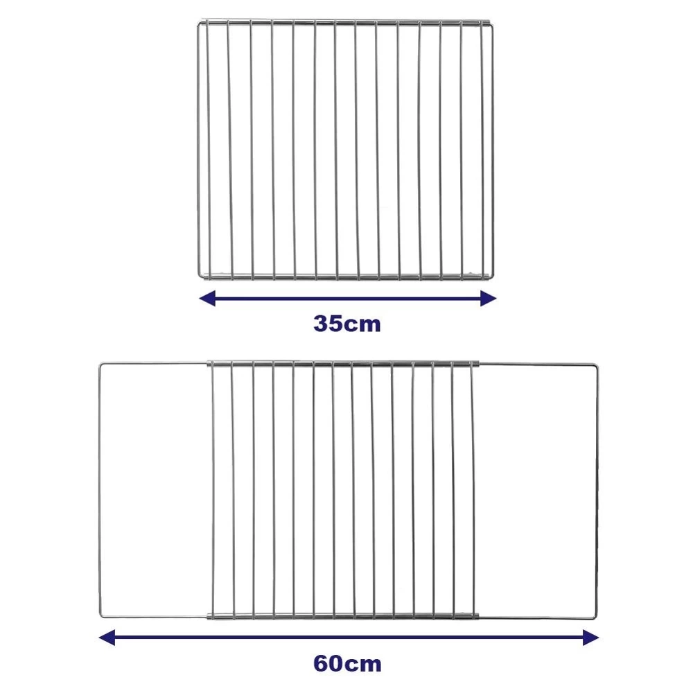 - REGULOWANA WIELKOŚĆ - Ruszt ma wymiary 35 x 32 cm, ale możemy regulować długość rusztu do 60 cm. Dzięki temu jest niezwykle użyteczny i przydatny w kuchni. Ruszt możemy stosować w piekarnikach o różnej szerokości. Wystarczy ustawić odpowiednią szerokość i przykręcić śrubkami.