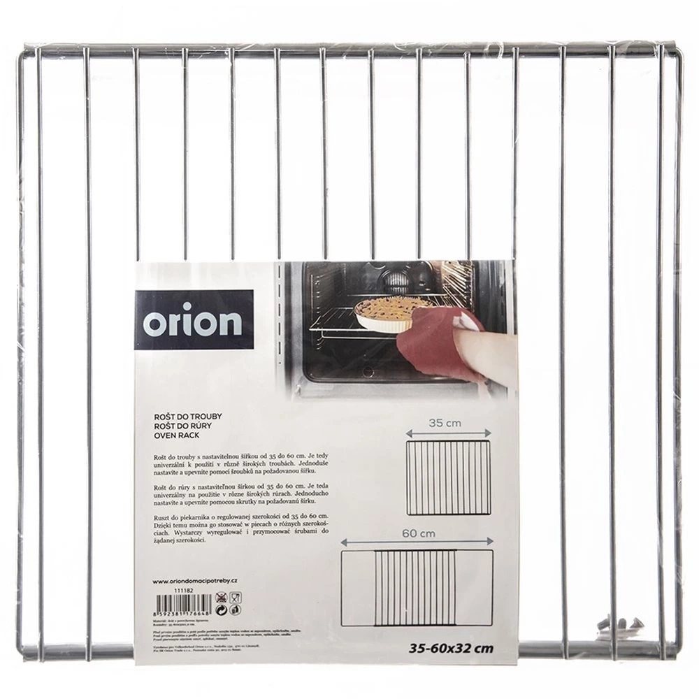 Stalowy ruszt o regulowanej długości od 32 - 60 cm, szerokość wynosi 32 cm. Ruszt wykonany z chromowanego metalu. Pasuje do większości piekarników, dzięki odpowiedniej regulacji. Niezwykle przydatny i wszechstronny w kuchni. Wykorzystamy go podczas wielu prac w kuchni. Idealny do pieczenia w piekarniku, wystarczy umieścić go na prowadnicach piekarnika i posłuży nam za kratkę do pieczenia na której możemy umieścić potrawy lub naczynia do zapiekania. Ruszt sprawdzi się również jako wkładka do pieczenia w brytfannie lub blasze, dzięki czemu pieczone mięsa nie będą leżały w wytapianym tłuszczu. Kratka pełni funkcję ochronną blatu, stołu na których chcemy umieścić gorące naczynie zdjęte bezpośrednio z kuchenki lub wyjęte z piekarnika. Odpowiednio użytkowany posłuży przez długie lata. Nie zaleca się mycia w zmywarce do naczyń. Oryginalny produkt czeskiej marki Orion. Wyprodukowano zgodnie z europejskimi standardami.