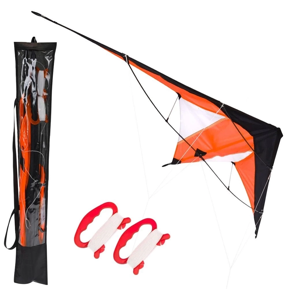 - Akrobacyjny latawiec wraz z dwoma linkami, każda o długości 30 metrów. Niezwykle efektownie prezentuje się na niebie. Zapewni długie godziny wspaniałej zabawy dla dzieci i dorosłych.