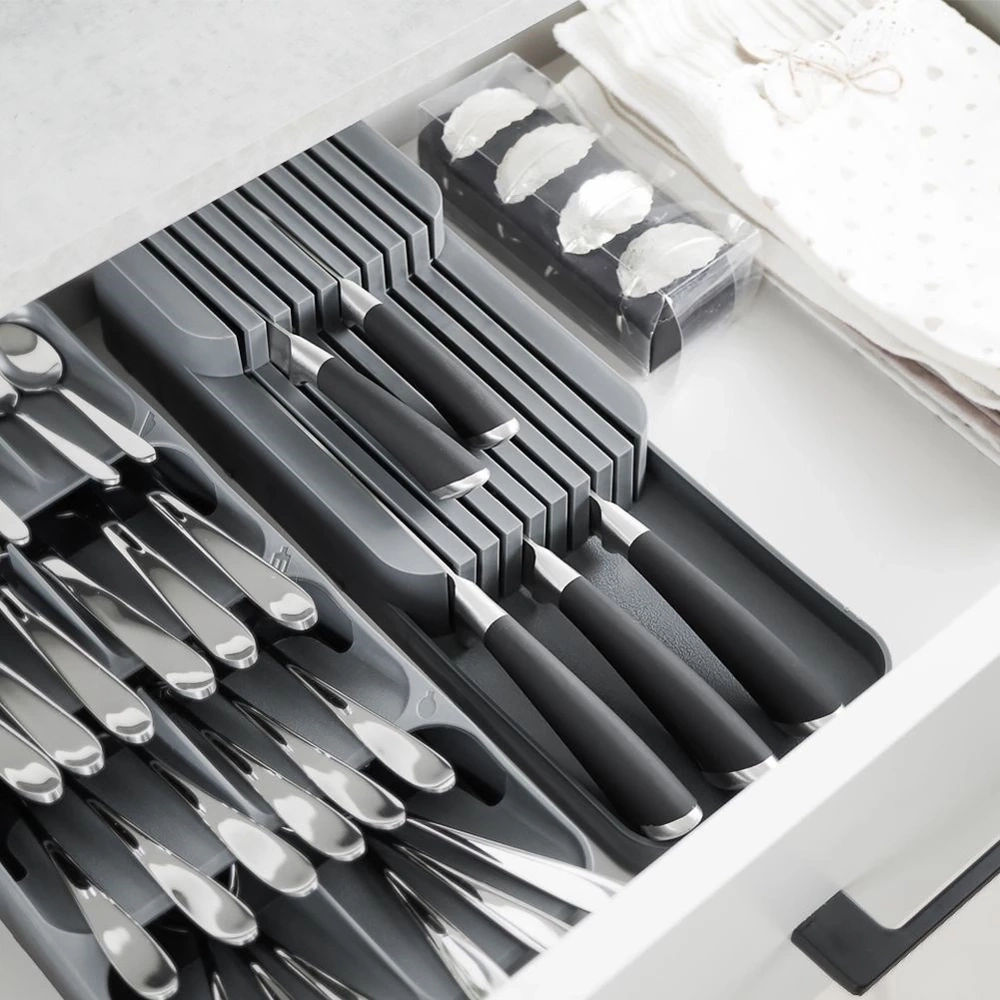 - UNIWERSALNY - Organizer posiada klasyczny wymiar więc będzie pasował do każdej szuflady lub szafki. Noże przechowujemy w nim na dwóch poziomach.