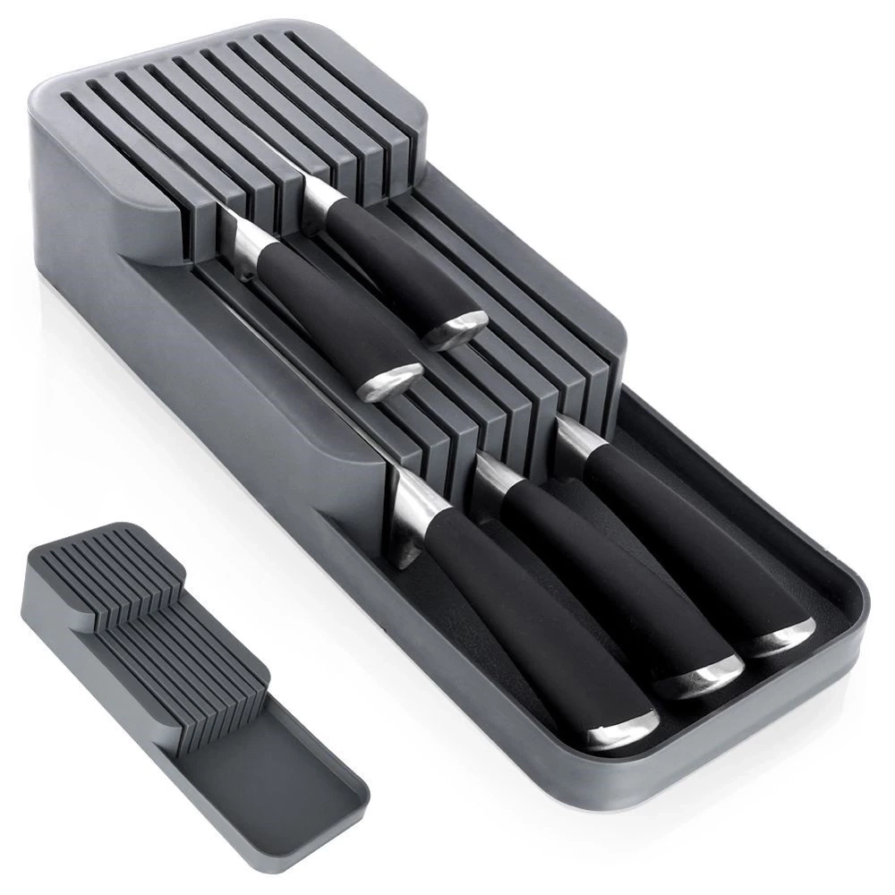 - Niezwykle praktyczny organizer na noże. Zajmuje mało miejsca, ale dzięki swojej konstrukcji jest bardzo pojemny. Wykonany z wytrzymałego tworzywa.