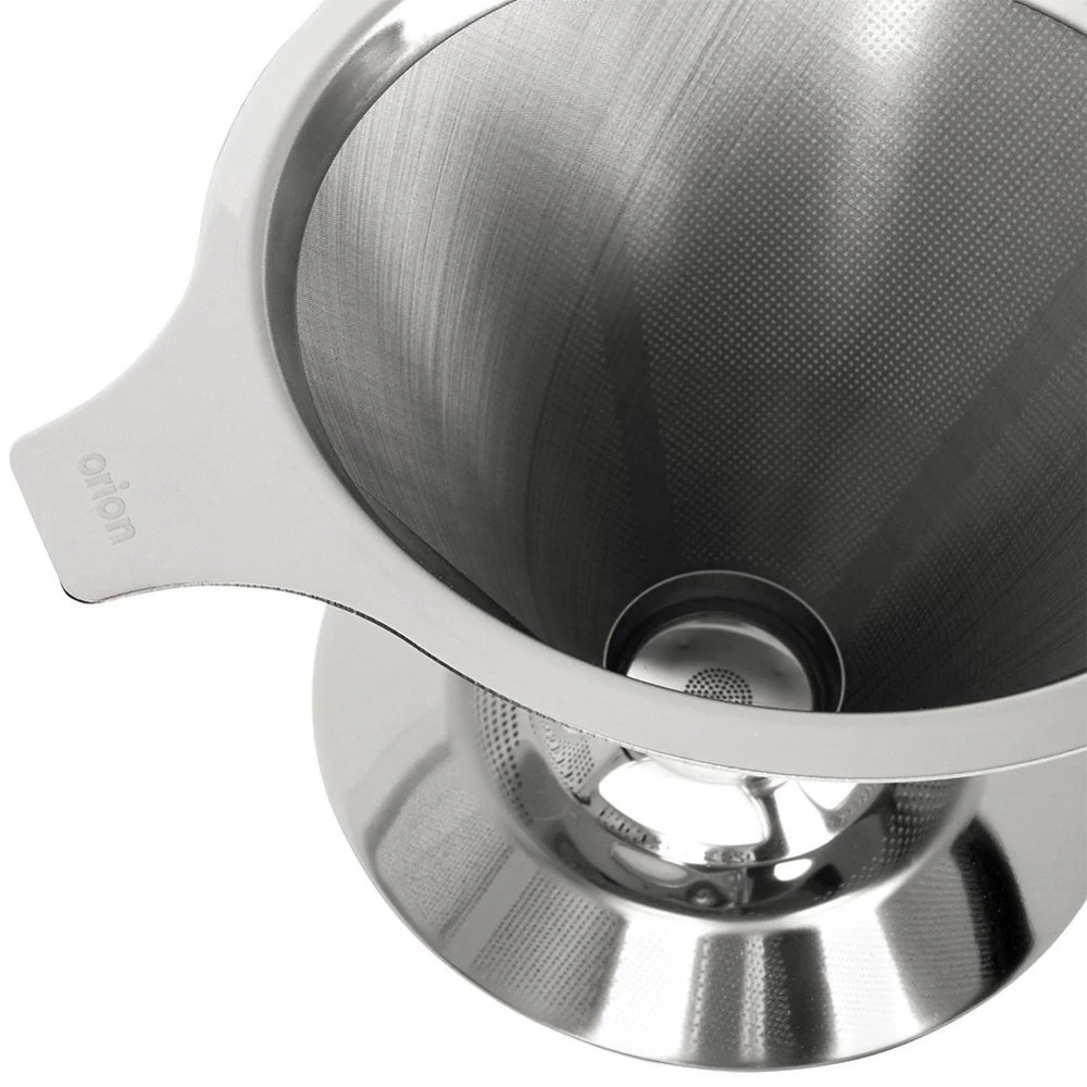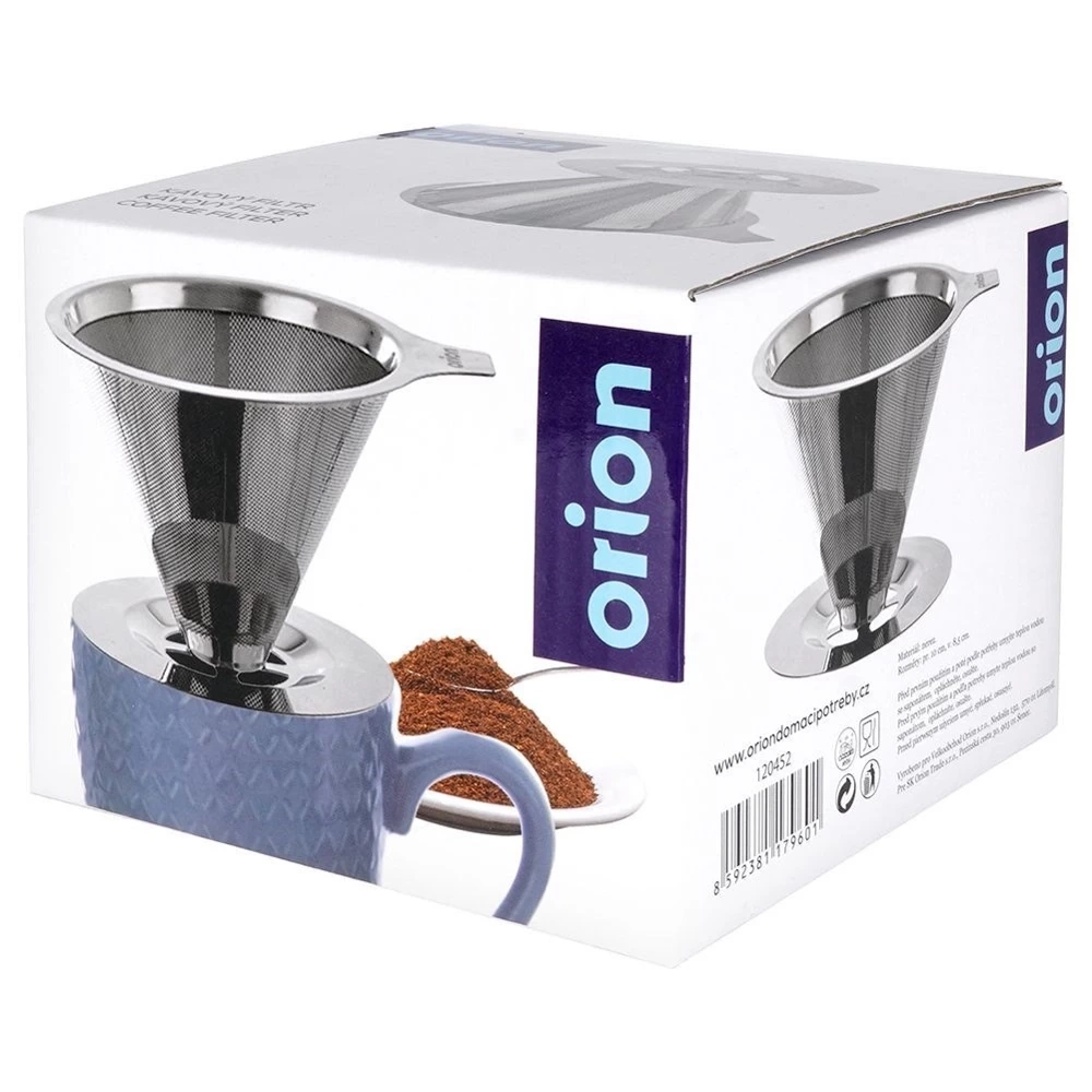 Filtr do parzenia kawy. Solidnie wykonany, odpowiednio użytkowany posłuży nam długie lata. Możemy użytkować go wielokrotnie, jest bardzo prosty w obsłudze - wystarczy umieścić go na naczyniu. Idealny pomysł na prezent dla miłośników parzenia kawy. Oryginalny produkt czeskiej marki Orion. Wyprodukowano zgodnie z europejskimi standardami.
