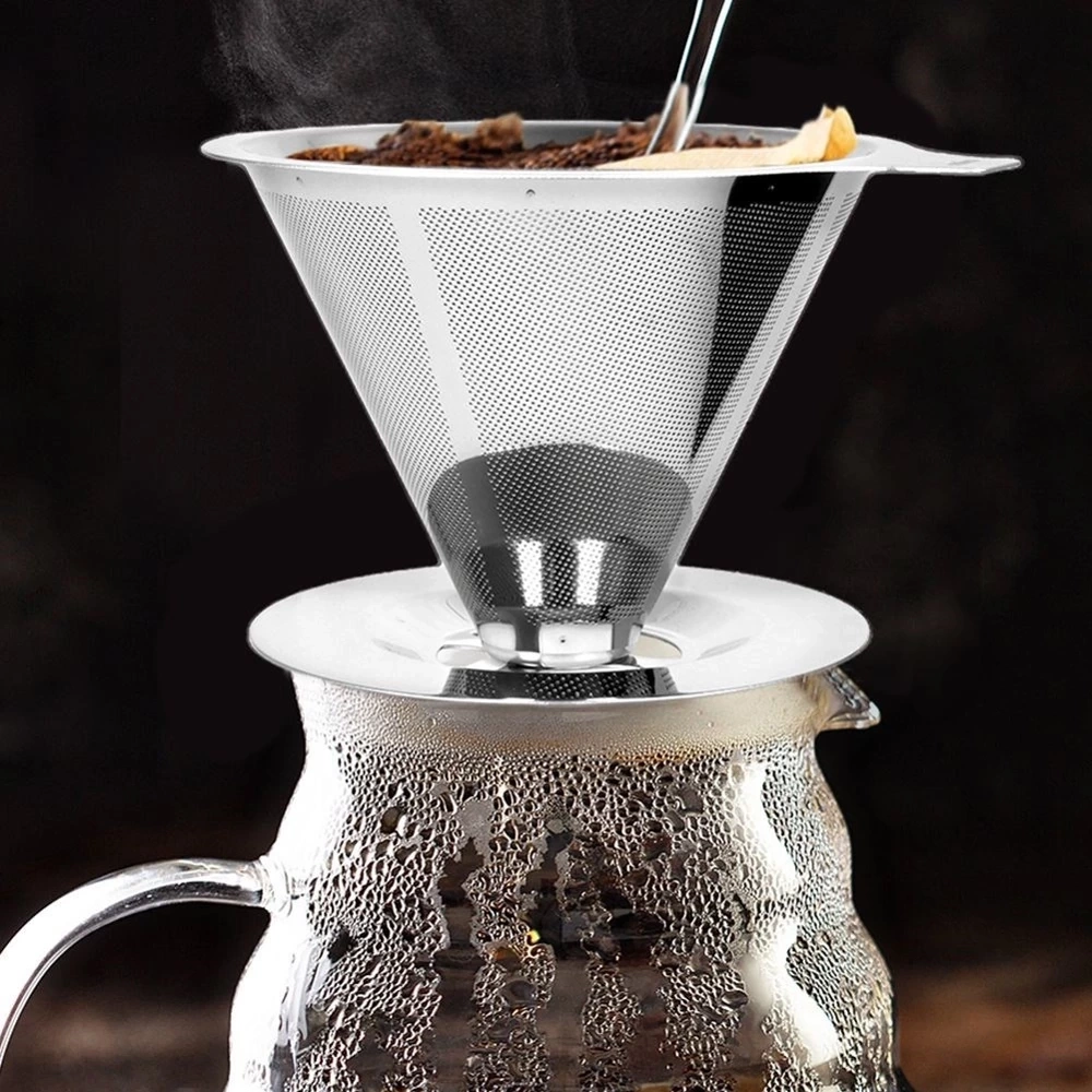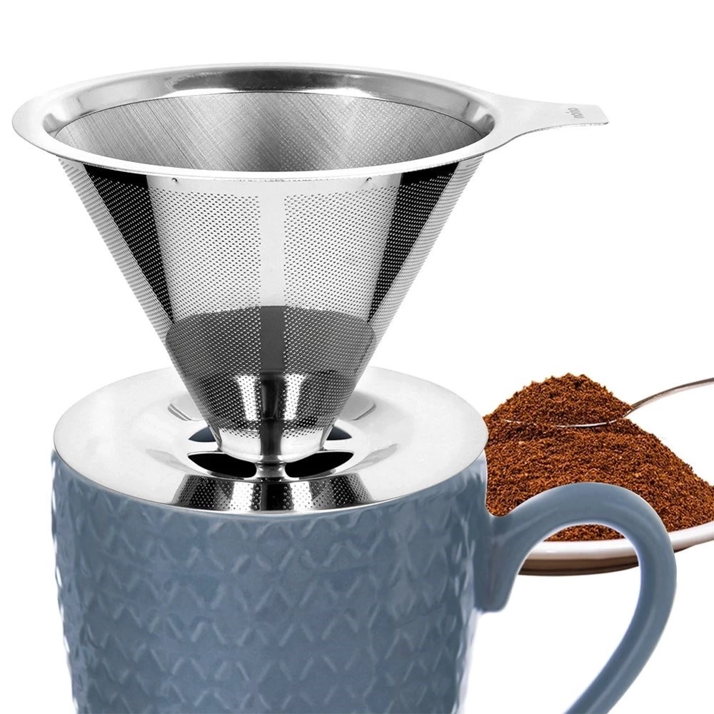 - Filtr do zaparzania kawy w całości wykonany ze stali nierdzewnej. Filtr jest wielokrotnego użytku i świetną alternatywą dla papierowych filtrów.