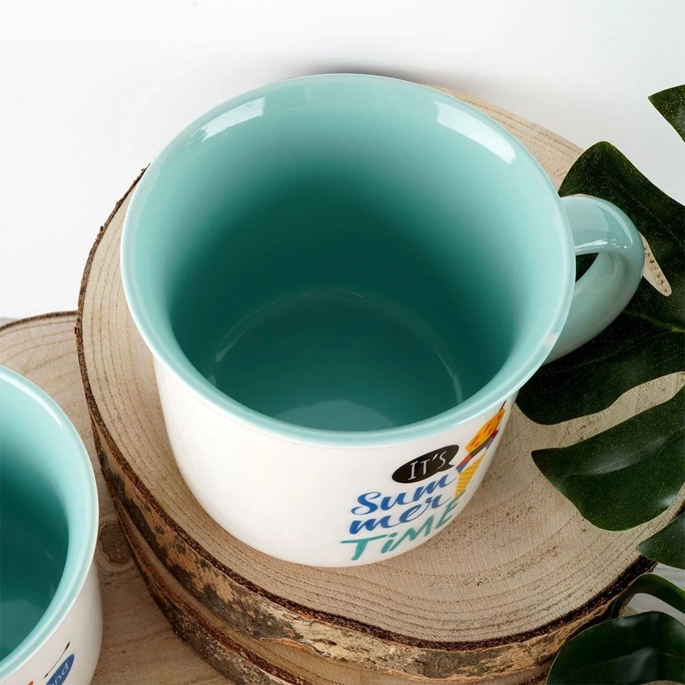- PORCELANOWY - Wykonany z wysokiej jakości porcelany w białym kolorze z wakacyjnym napisem "Summer Coctails Party." Środek kubka oraz uchwyt są w kolorze miętowym. Odpowiednio użytkowany posłuży długie lata.