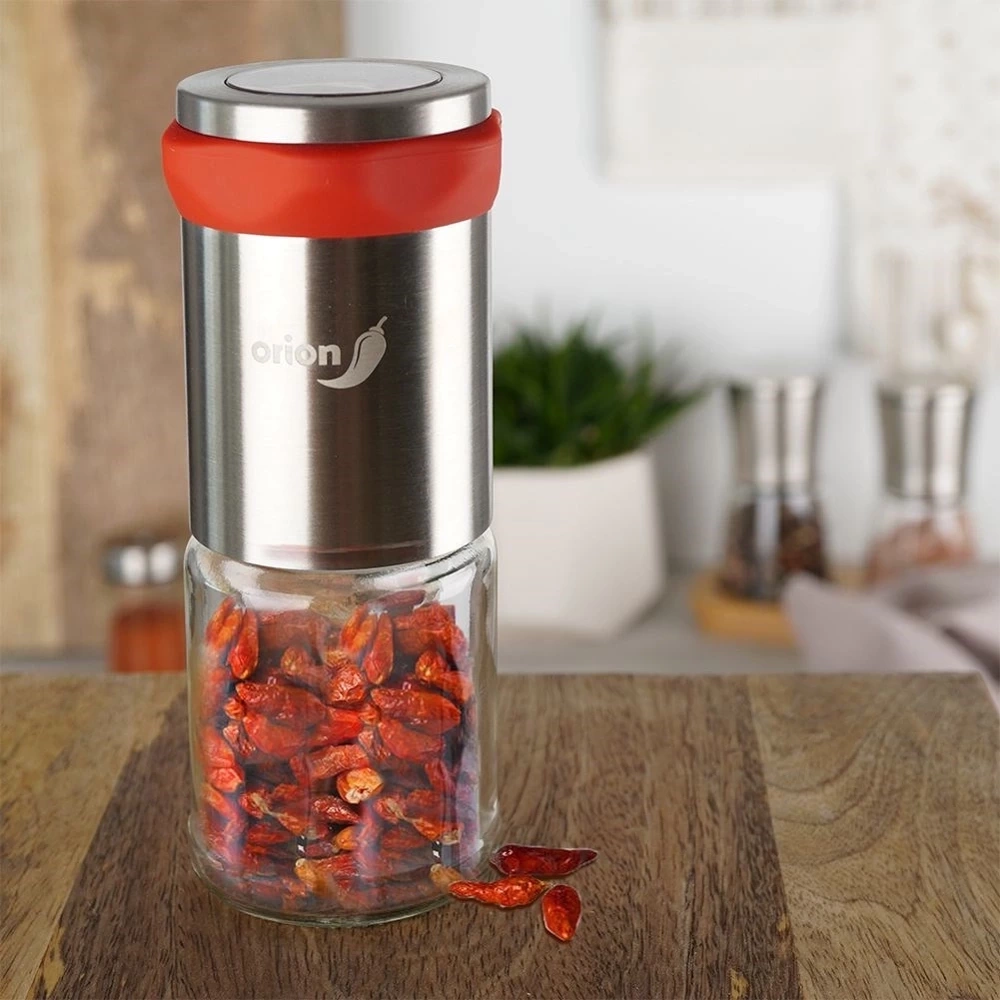 Młynek ręczny do mielenia papryczek chilli. Wykonany solidnie z najwyższej jakości materiałów. Stalowy mechanizm mielący gwarantuje mielenie nawet najtwardszych kawałków. Młynek będzie pięknie prezentował się w każdej kuchni oraz na stole. Mielenie przypraw bezpośrednio przed dodaniem ich do dań pozwoli na wydobycie świeżego aromatu. Oryginalny produkt czeskiej marki Orion. Wyprodukowano zgodnie z europejskimi standardami.