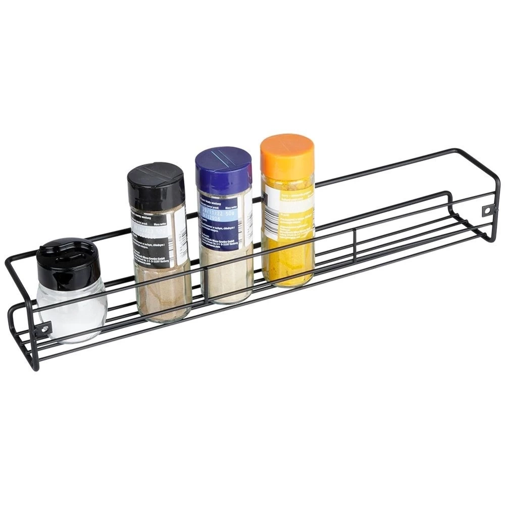 - Półka ścienna idealna na przyprawy. Wykonana solidnie z metalu w kolorze czarnym. Sprawdzi się również na kosmetyki w łazience. Półka jest wąska więc prezentuje się efektownie.