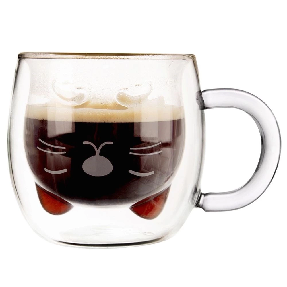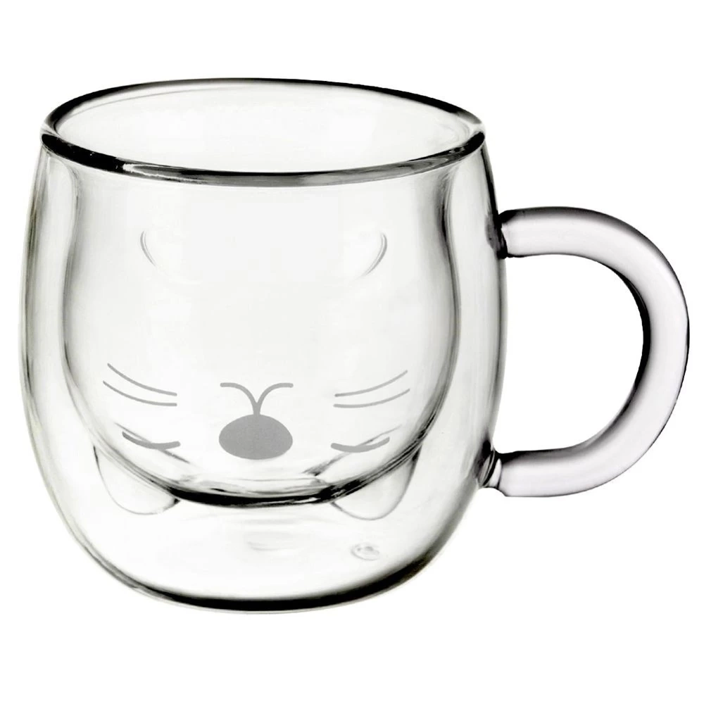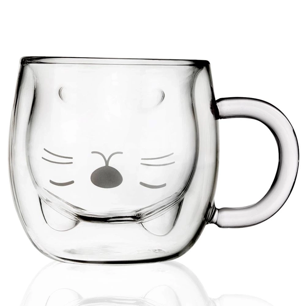 - Szklanka termiczna z podwójną ścianką z motywem kotka. Zwiększona odporność na wysokie i niskie temperatury, zarysowania, pęknięcia i chemikalia.
