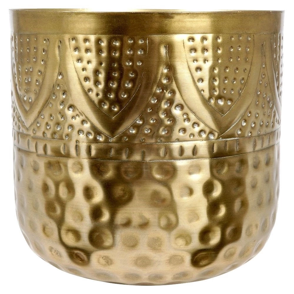 - Oryginalna osłonka na rośliny wykonana z metalu, który jest pozłacany mosiądzem. Posiada młotkowaną strukturę oraz efektowny dekor.