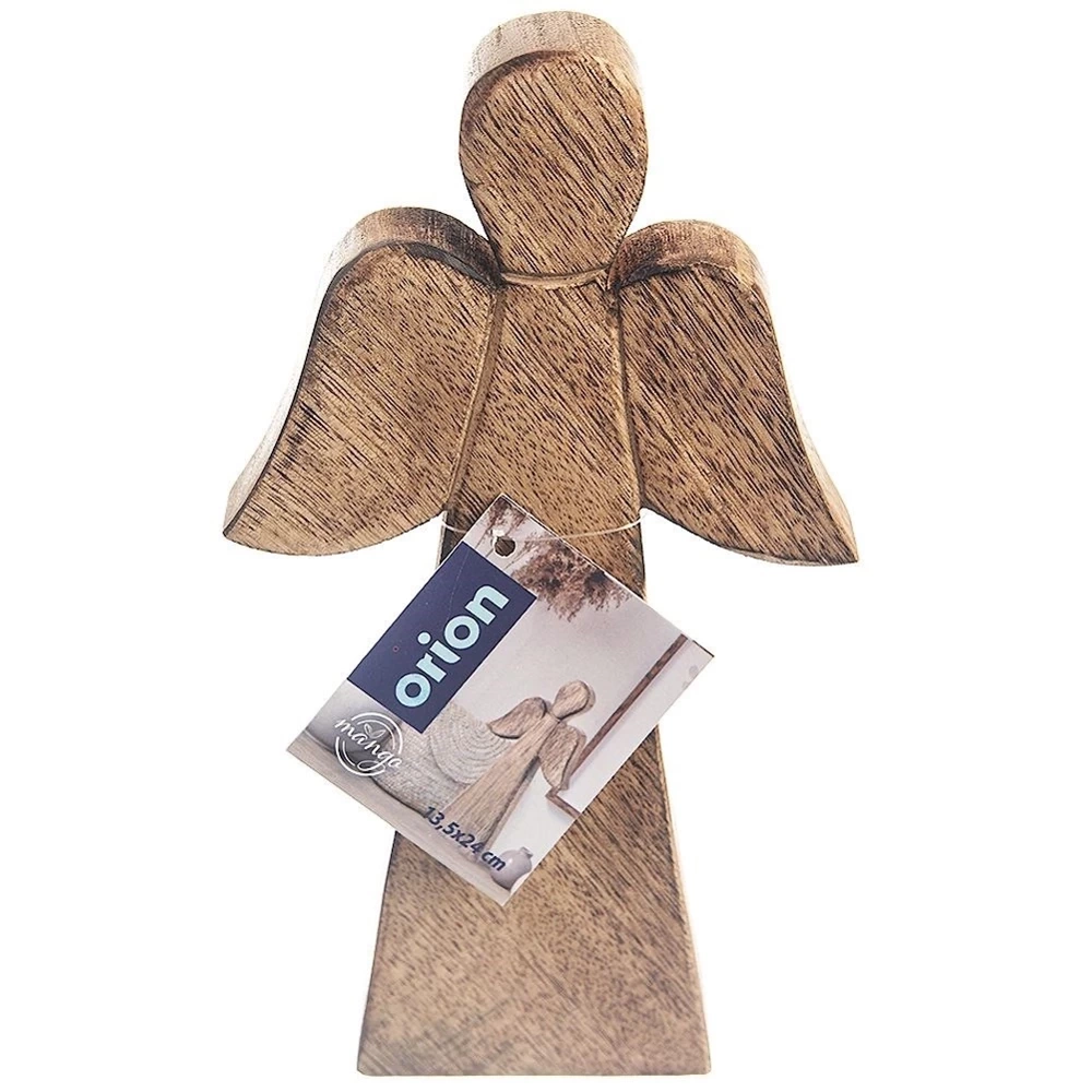 Figurka anioła wykonana z naturalnego drewna mangowca. Prezentuje się bardzo efektownie. Figurka będzie wyjątkową dekoracją oraz pomysłem na oryginalny prezent. Idealna na okres zimowo, świąteczny, ale możemy użytkować ją również cały rok. Piękna dekoracja dla każdego, kto uwielbia proste, naturalne dekoracje. Oryginalny produkt czeskiej marki Orion. Wyprodukowano zgodnie z europejskimi standardami.