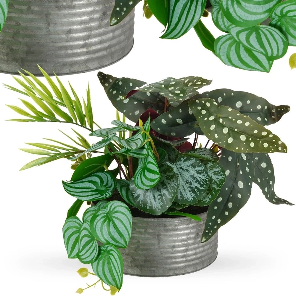 Kompozycja sztucznych roślin w doniczce. Kompozycja prezentuje się bardzo efektownie a jej wygląd jest bardzo realistyczny. Posiada piękne liście, które są bardzo realistyczne. Sztuczna roślina świetnie sprawdzi się w miejscach w których ciężko utrzymać żywe rośliny. Kompozycja roślin wykonana jest z dbałością o każdy detal a jej utrzymanie jest niezwykle łatwe i nie zajmuje dużo czasu. Będzie efektownym dodatkiem dekoracyjnym w każdym pomieszczeniu. Podane wymiary mogą nieznacznie różnić się w każdej z roślin, wymiar zależy od odpowiedniego ułożenia liści. Wyprodukowano zgodnie z europejskimi standardami.