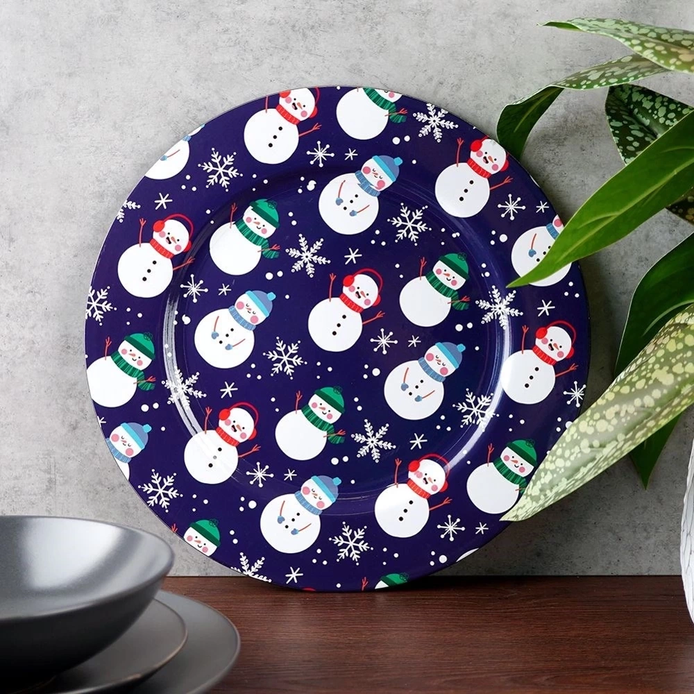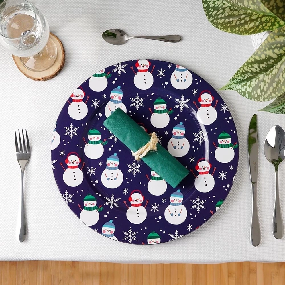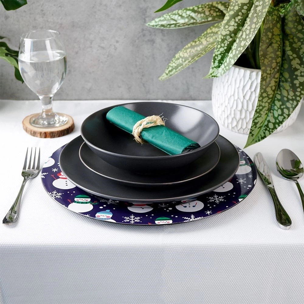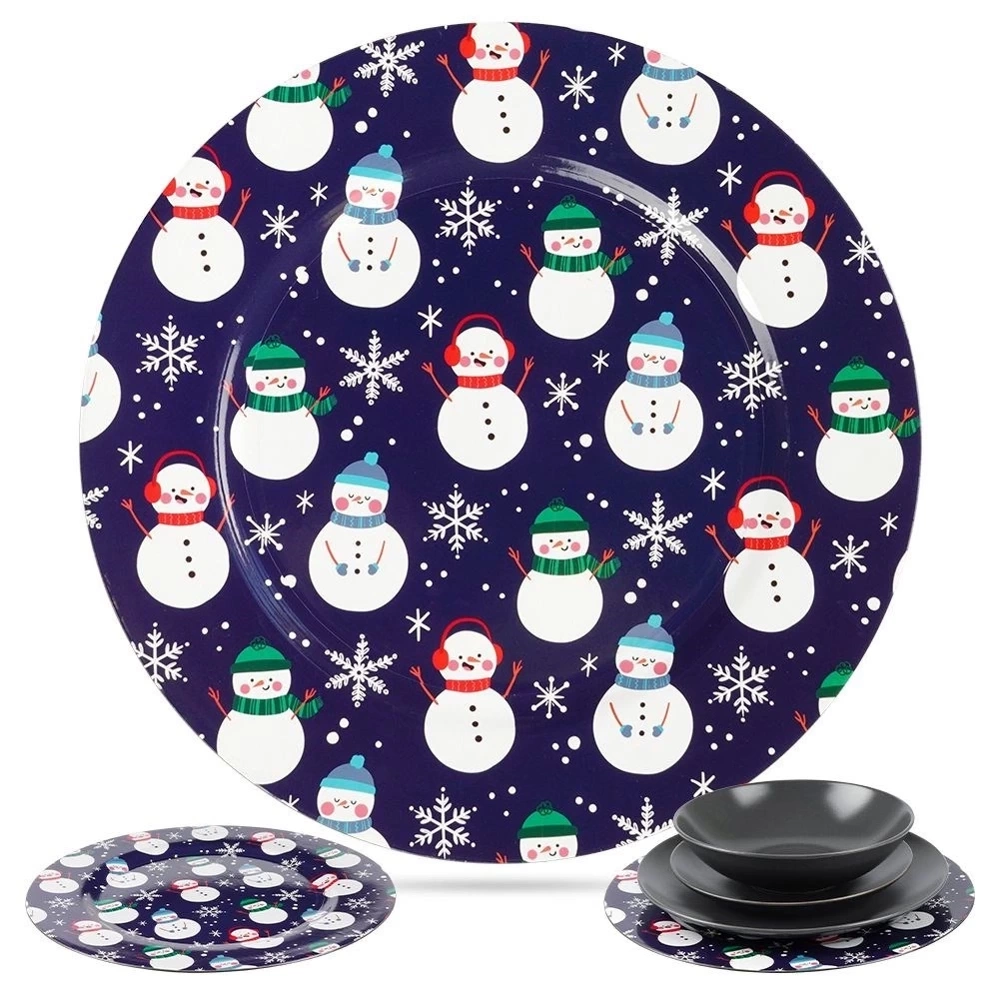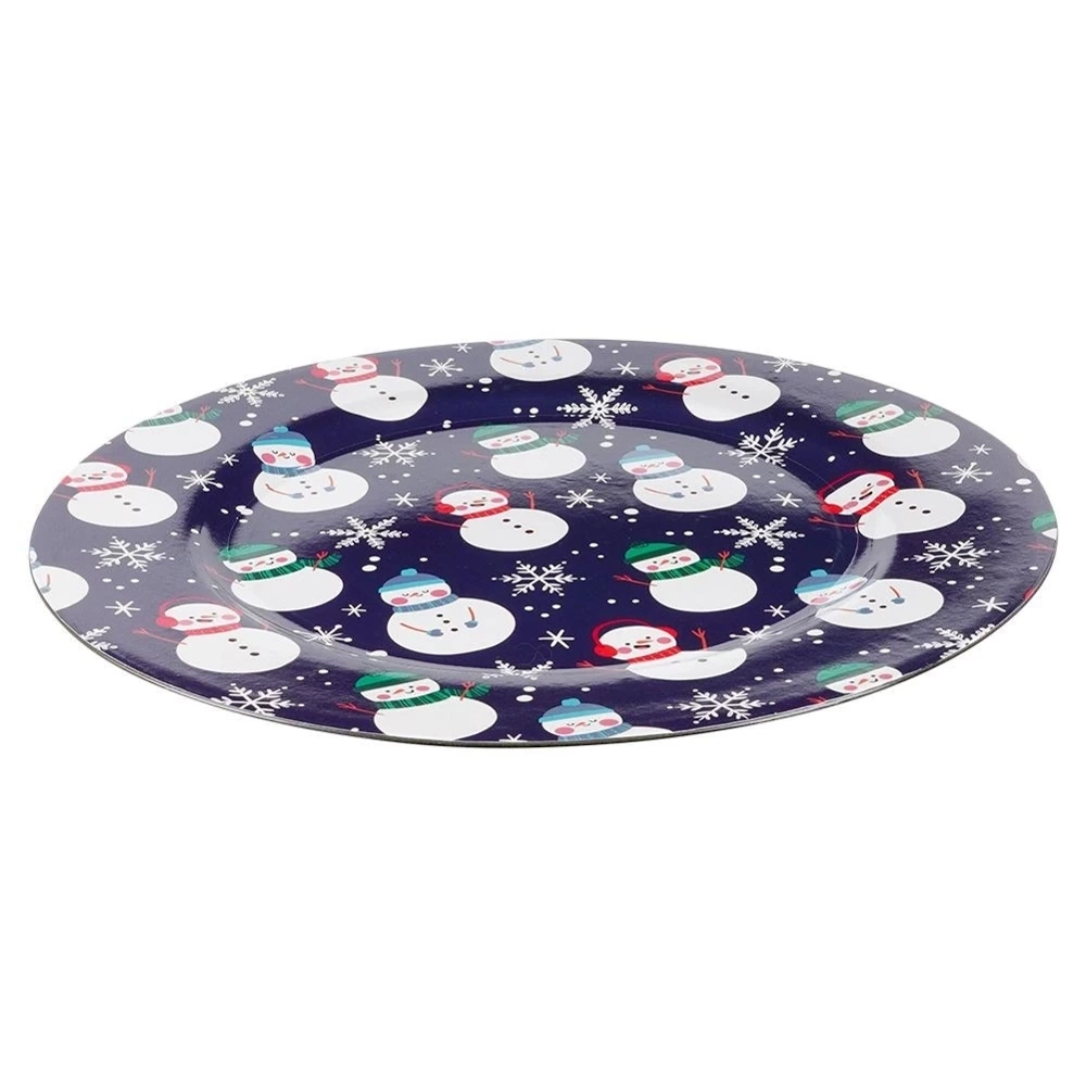 - Okrągła podkładka pod talerze o średnicy 33 cm. Wykonana z wysokiej jakości tworzywa w granatowym kolorze z motywem bałwanków. Idealna w okresie świątecznym.